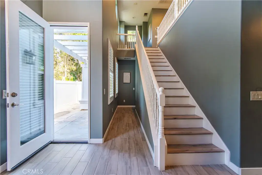 Welcome home to your new beginnings with tranquil rolling-hill views! This turn-key, complete coastal décor home is like a true 4-bedroom home, where upstairs you have 3 bedrooms + a tech/loft/Office space and on the first-floor there are custom barn doors giving the option to open or close the game/office/play area. Upon entering the home, you are greeted into the loft by high-ceilings and newly remodeled and freshly painted bullnose stairs. The kitchen is equipped with stainless steel appliances, quartz counter top with backsplash, and farm style sink. The main living area features very gracious living and dining room areas, fireplace, and additional patio area which makes it ideal for entertaining with tile flooring throughout. Upstairs you will find the romantic master suite that is complete with a retreat area, large walk-in closet, dual vanity, and a separate tub and shower. All the bathrooms have marble countertops and the showers were updated with floor-to-ceiling tiles. On the second floor you have the laundry room with linen cabinets above and new bi-fold doors, two spacious secondary bedrooms that include a Jack and Jill bathroom, plenty of linen and storage cabinets, as well as the tech/loft space. This detached home was designed to maximize its stunning views from every room. Plantation shutters are throughout the home with stunning windows to provide a plethora of natural light. The outside space includes vinyl fencing for low maintenance and an enclosed patio perfect for entertaining or pets. Additional features that are included in this home are a water softener system. Relish all the amenities that Ladera Ranch has to offer, including Award-winning Capistrano Schools, HOA paid high speed internet access, swimming pools, spas, kiddie pools, water park, splash pads, gazebos, biking and hiking trails, skate park, sport complexes including tennis, soccer, baseball, and T-ball, clubhouses, playgrounds & more! This home is a Must See!