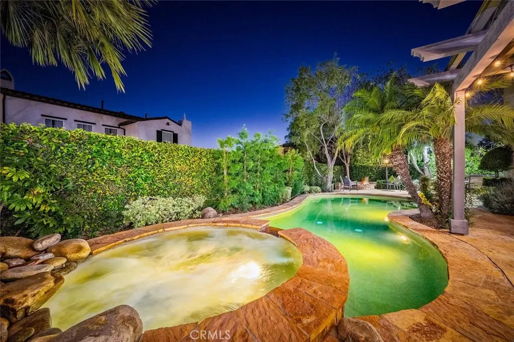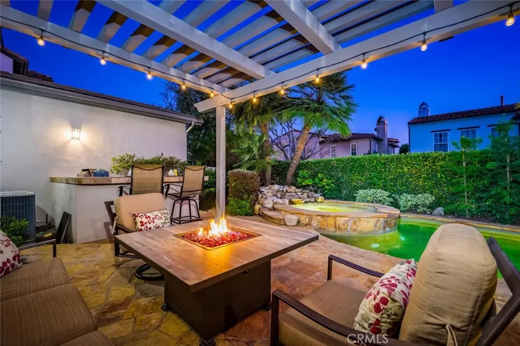 Tucked away on a quiet, tree-lined street in the coveted Oak Knoll Village of Ladera Ranch, this remarkable residence invites you into a life of comfort, connection, and elevated everyday living. Spanning approximately 4,100 square feet, the home effortlessly blends timeless elegance with modern functionality, offering five bedrooms—including a highly desirable main-level suite—five bathrooms, and an expansive bonus room designed for gathering, relaxing, and making lasting memories. From the moment you arrive, a sense of warmth and refinement surrounds you. Soft, neutral tones, rich crown molding, and custom wainscoting create an inviting backdrop, while natural light fills the thoughtfully designed living spaces. At the heart of the home, the open-concept kitchen and family room encourage connection—whether it’s casual mornings around the oversized island, holiday celebrations, or evenings spent unwinding together. With stainless steel appliances, a butler’s pantry, walk-in pantry, and abundant cabinetry, the kitchen is as functional as it is beautiful. Upstairs, the primary suite becomes your personal sanctuary. A spacious bedroom with a private sitting retreat offers the perfect place to begin and end each day, while the spa-inspired bath invites you to relax and recharge with its soaking tub, dual vanities, and expansive walk-in shower. Step outside and discover your own private escape. Sun-filled afternoons by the PebbleTec pool and spa, evenings gathered around the fire feature, and effortless alfresco dining under the covered patio create a backyard designed for both quiet moments and vibrant entertaining. Every detail has been thoughtfully considered—from the home management area that keeps daily life running smoothly, to the generous secondary bedrooms that provide comfort for family and guests alike. A porte-cochère driveway, three-car garage, EV charger, and solar system add both convenience and efficiency to this exceptional home. Beyond the home, Ladera Ranch offers a lifestyle unlike any other—where scenic trails, parks, top-rated schools, community events, and charming local dining and shopping create a true sense of belonging. This is more than a home—it’s where life unfolds beautifully.