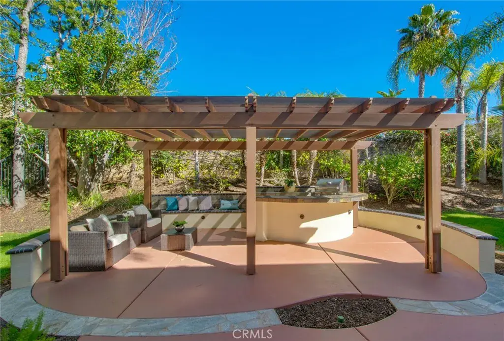Nestled on a premier corner lot in the sought-after Wyeth community of Oak Knoll Village, 30 Winslow Street is a beautifully appointed residence offering 4,079 square feet of refined living space with exceptional privacy. This stunning two-story home features 5 spacious bedrooms, including a convenient main-level bedroom suite, plus a versatile and spacious bonus room that easily serves as a 6th bedroom, home office, or media room. A private driveway leads to the 3-car attached garage and covered carport, providing ample parking and storage. The impressive chef’s kitchen showcases granite countertops, a generous center island, white cabinetry, gas cooktop, and ample storage, all flowing seamlessly into the sun-filled family room. Formal living and dining rooms provide elegant spaces for entertaining, while the open-concept layout connects effortlessly to the inviting backyard retreat. Upstairs, the luxurious primary suite boasts a spa-inspired bathroom with a freestanding soaking tub, dual vanities, a walk-in shower, and an oversized walk-in closet. A private covered balcony off the primary suite offers the perfect place to unwind. Step outside to discover an entertainer’s paradise complete with a custom pergola, built-in seating areas, a tranquil water feature, and mature landscaping creating a private oasis. The corner lot positioning provides added privacy and an open, airy feel rarely found in this community. Additional highlights include plantation shutters, recessed lighting, crown molding, and designer finishes throughout. Enjoy close proximity to the resort-style Oak Knoll Clubhouse with pools, splash pad, pickleball, and access to Ladera Ranch’s award-winning schools, parks, and trails. A rare opportunity in one of Orange County’s most coveted communities.