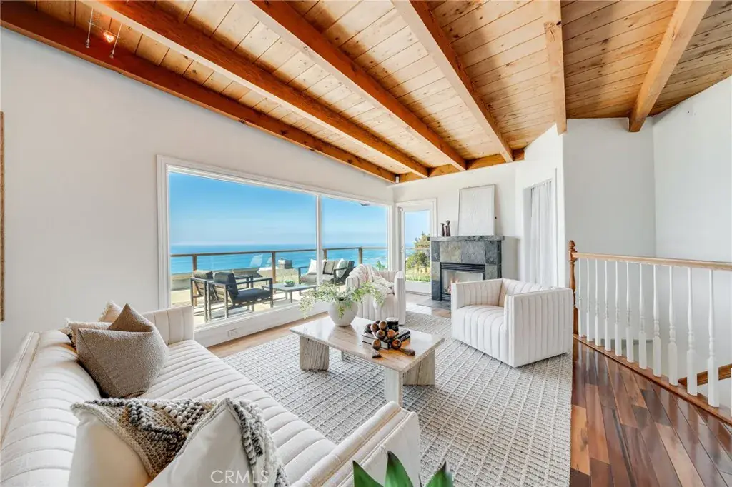 Courtesy of Compass. Disclaimer: All data relating to real estate for sale on this page comes from the Broker Reciprocity (BR) of the California Regional Multiple Listing Service. Detailed information about real estate listings held by brokerage firms other than James Outland include the name of the listing broker. Neither the listing company nor James Outland shall be responsible for any typographical errors, misinformation, misprints and shall be held totally harmless. The Broker providing this data believes it to be correct, but advises interested parties to confirm any item before relying on it in a purchase decision. Copyright 2026. California Regional Multiple Listing Service. All rights reserved. Inside, the home features soaring beamed ceilings in the living room and beautiful hardwood floors that add warmth and character throughout. The kitchen and living areas flow seamlessly to the outdoor spaces, creating an expansive, view-filled space to relax or entertain. The kitchen is a centerpiece for the home – outfitted to encourage your inner chef in an inspiring setting. The primary suite is privately situated and generously sized, with whitewater views that greet you each morning. Open the windows and let the rhythmic sound of crashing waves lull you to sleep.