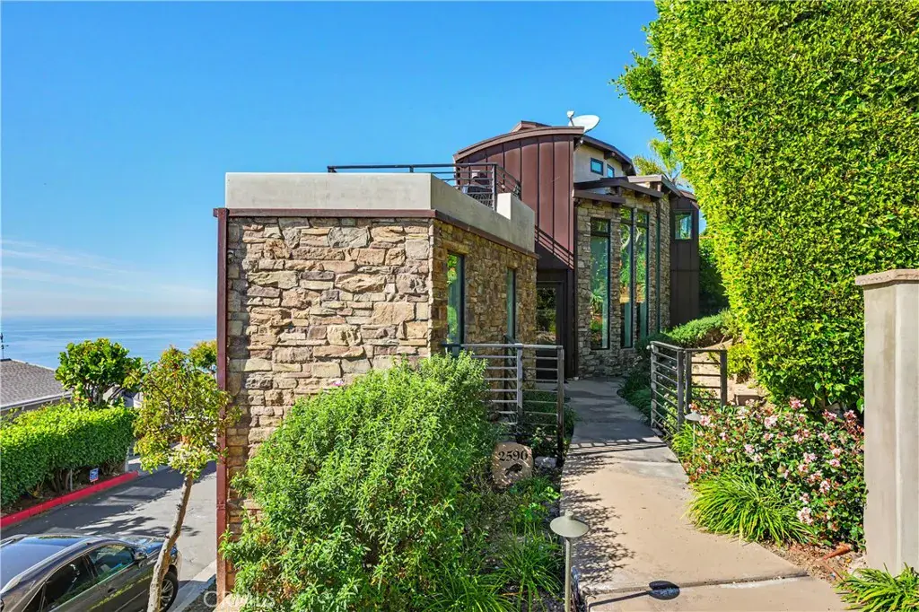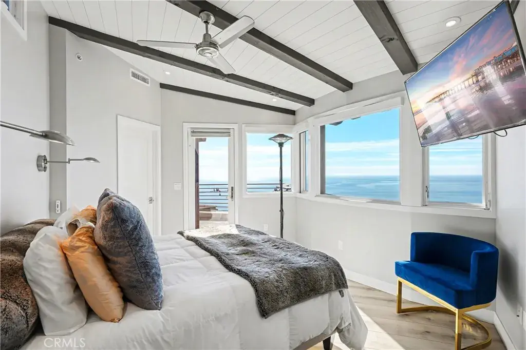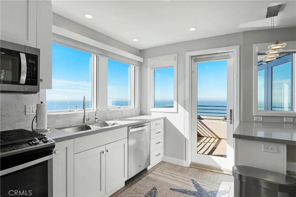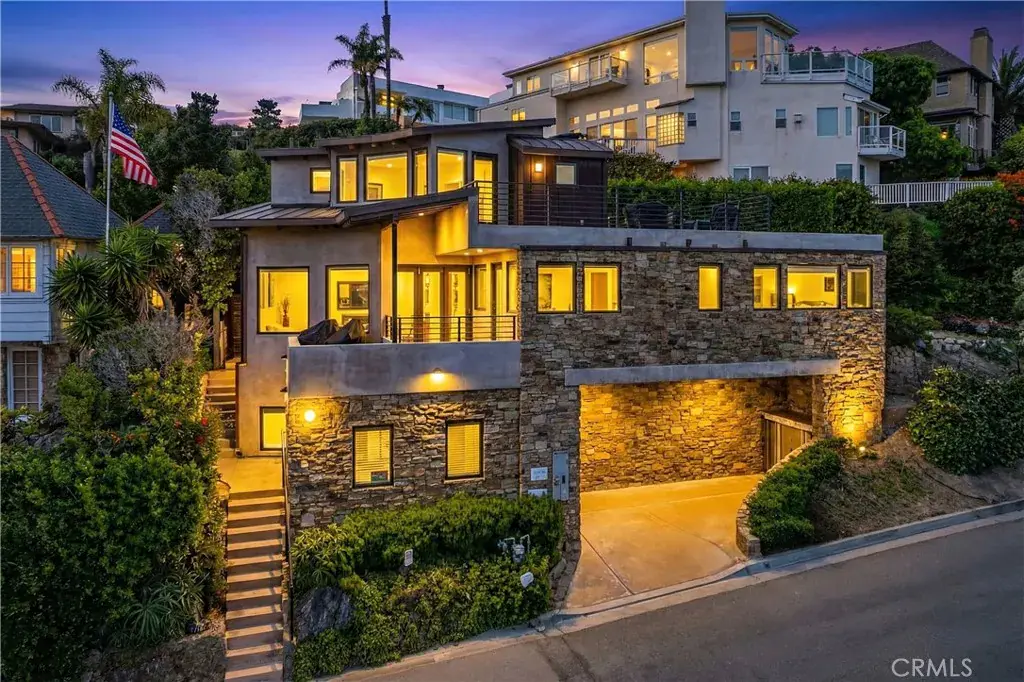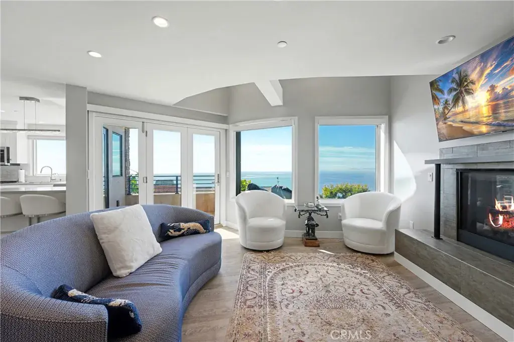 Completely rebuilt from the ground up in 2019, the home features all-new plumbing, electrical systems, an aluminum 50 year roof, reverse-osmosis water filtration, AC, tankless water heater etc. Just like moving into a brand new home. Thoughtfully reimagined with a contemporary design, the residence showcases soaring windows that frame dramatic coastline views, including San Clemente and Catalina Islands. Abundant natural light fills the space, while a cozy fireplace sets the perfect ambiance for relaxing evenings accompanied by the sound of crashing waves. Best Views in all of Laguna.