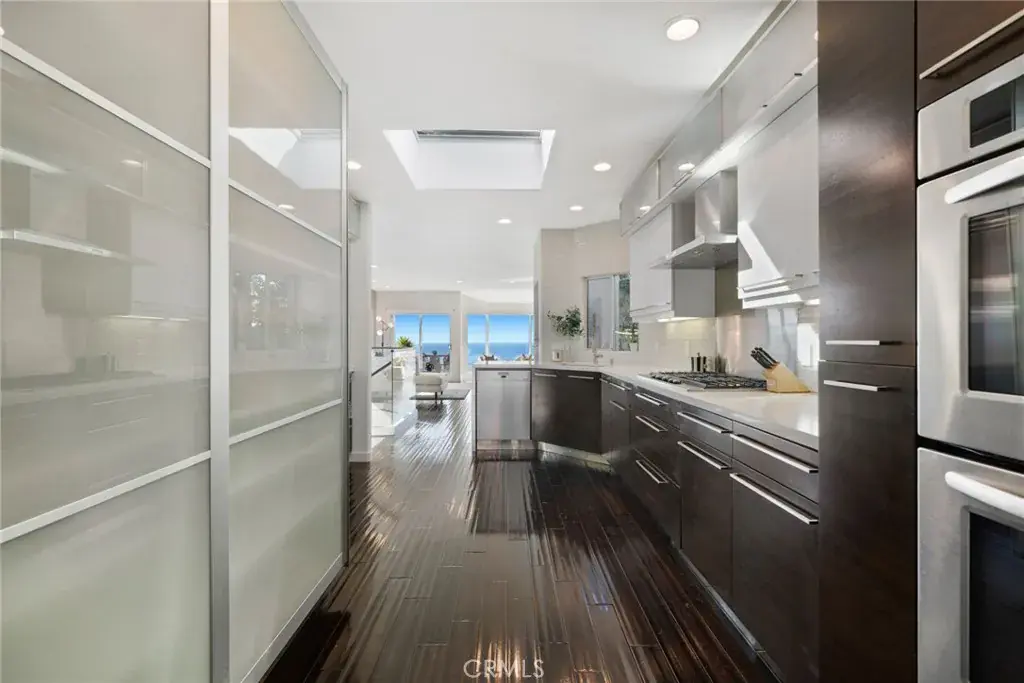 Welcome to 928 Quivera, a light-filled Arch Beach Heights retreat where multi-level ocean views meet fresh, airy interiors and thoughtful modern upgrades. From Catalina Island and whitewater to glowing sunsets and city lights, the sweeping vistas make this home feel remarkably close to the coastline. The home lives bright and fresh, with sight lines that stretch across whitewater, Catalina Island, sunsets, and sparkling city lights—views that feel both expansive and intimate. Thoughtfully updated, the interiors blend clean lines with warmth and functionality. The kitchen has been refreshed with newly refinished cabinetry, white upper cabinets, CaesarStone countertops, a built-in Sub-Zero refrigerator, and a new Miele dishwasher, all complemented by updated lighting that enhances the home’s airy aesthetic. Living and dining spaces flow seamlessly to outdoor decks, inviting ocean breezes and effortless indoor-outdoor living. The primary suite offers a peaceful retreat with ocean views and a fully redesigned spa-inspired bathroom, while a renovated powder room adds a modern touch for guests. Secondary bedrooms provide flexibility and privacy, including generous room sizes and closet space enhanced by custom California Closets. Practical upgrades elevate everyday living, including a new tankless water heater, epoxy-finished garage floors with an integrated storage system, and thoughtfully improved retaining walls. Throughout the home, Shade Store window treatments add both style and function. Outdoor spaces are equally considered, featuring backyard turf, a mounted outdoor TV, and a custom iron gate along the walkway—ideal for entertaining or unwinding after a day at the beach. A flat driveway provides guest parking, while the two-car garage offers direct access and ample storage. Set within the Arch Beach Heights community near parks, hiking trails, and tennis courts, this home offers a rare balance of elevated coastal living and everyday convenience—just minutes from Laguna Beach’s renowned beaches, dining, and culture.