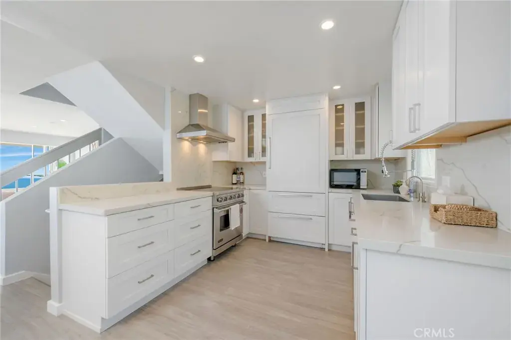 Offering an unparalleled coastal lifestyle, Villa 91 is one of just sixteen coveted units located on the oceanfront. Soothing sounds of waves and ocean breezes enter the residence through La Cantina doors which span the length of its voluminous living space. Featuring recently updated and open interiors, this two bedroom + den, three bathroom layout encompasses an open concept main living area. Custom curated brand new furnishings create unparalleled design and function. Sightings of marine wildlife can be enjoyed year round without ever leaving this extensively upgraded villa. The den on the ground level is a great multipurpose space which could serve as a home office, a third bedroom, or a secondary entertainment area. In addition to a spectacular location directly on the sand, property highlights include a modern kitchen with high-end appliances and custom cabinetry, as well as updated flooring throughout. Amenities of this immaculately maintained resort-like community include two heated pools, an outdoor kitchen with a cabana, a fitness center, a sports court for pickle ball enthusiasts, and two residents-only common rooms. All of city’s landmarks and attractions are just minutes away: from Victoria Beach and Lagunita, to the Montage Resort just next door. This is dream living right on the sand.