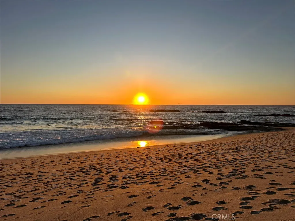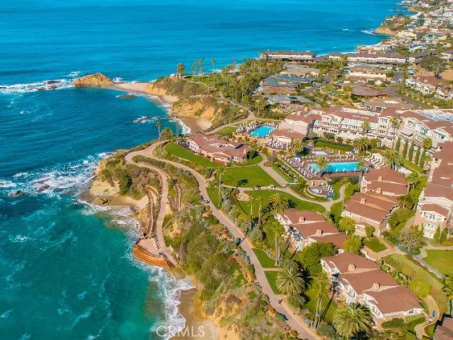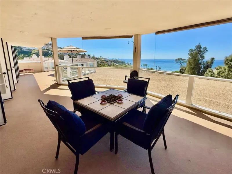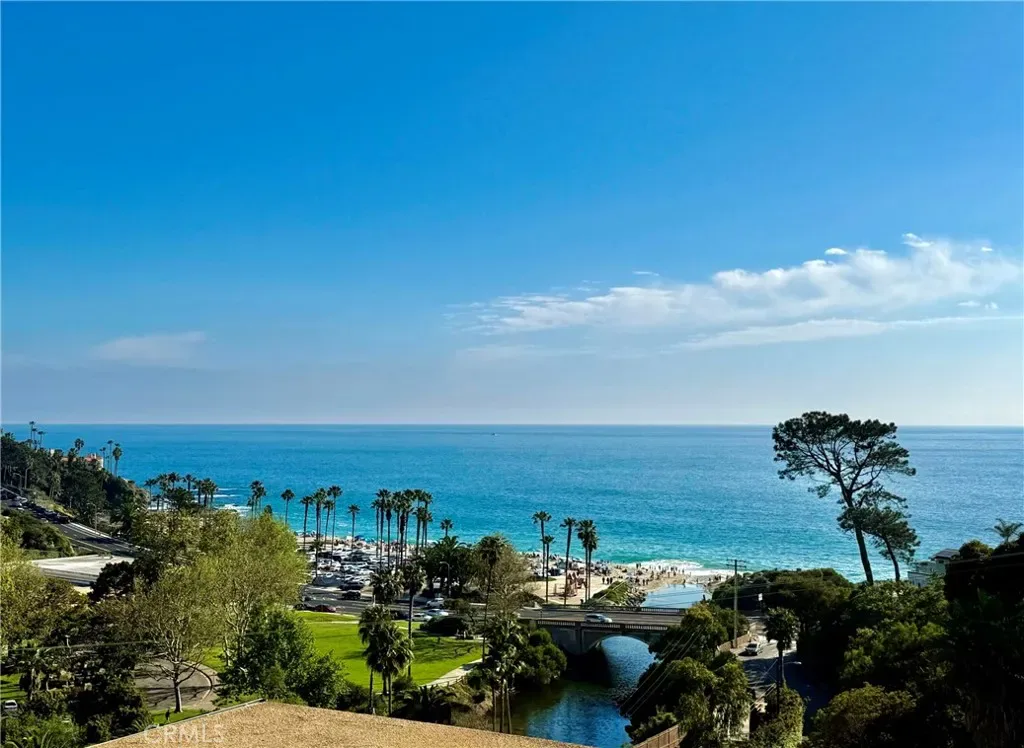 1st time on market in 25 years. Stunning ocean and whitewater views from this single-level Creekside condo. No steps from the adjacent garage provides a seamless 30 second car-to-door entry into the spacious interiors of this updated two bedroom and two bath beach residence. A very unique opportunity to have sit-down panoramic views without any exterior or interior steps. A huge wraparound deck spans the length of the living room and primary bedroom presenting a private indoor/outdoor lifestyle. A new spacious kitchen offers stone counters, recessed lighting, custom cabinetry and ocean view bar seating. The living room blends with a large dining area complimented by a bank of French doors opening to the view deck. The primary bedroom provides bed-height coastal views, large closet, access to the deck and a spacious bath. An oversized second bedroom has multiple windows, walk-in closet and private bath entrance. The interiors and exteriors are very private and the enormous deck provides three separate entertainment areas with elevated views of Aliso Beach, Camel Point, Catalina Island, the creek and year around sunsets. Stepping out the front door leads immediately to two garage car spaces as well as a gated entry and sidewalks to the Aliso shopping center, Lang Park, the Montage Resort, beach access to Treasure Island and Aliso beach and, of course, the trolley into town. A separate private stairway system leads below to the access road for additional beach access and The Ranch. Truly a single-level lifestyle with a beach-close environment. Watch for whales and listen to waves.