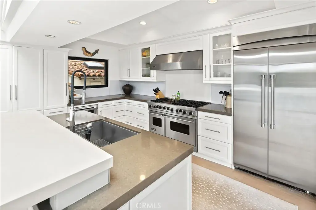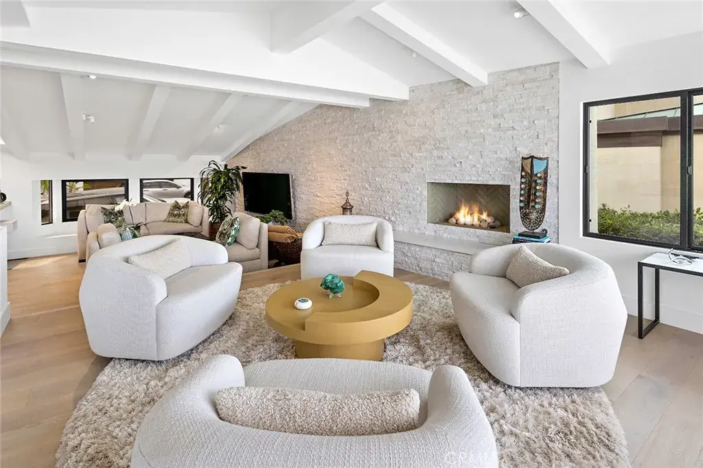 This exceptional three bedroom, three-and-half-bath home has been completely remodeled and offers whitewater views from its coveted ocean-side location. Designed for modern living, this home boasts a sleek, contemporary aesthetic with clean lines and windows that flood the interiors with natural light. The home’s spacious floor plan is designed for both entertaining and intimate relaxation. The chef’s kitchen, complete with top-of-the-line appliances and a sleek design, opens to a dining area featuring an exquisite central fireplace. The upper, main level living room flows effortlessly to an ocean-facing deck, perfect for Catalina Island and sunset views. The spacious bedrooms offer luxurious en-suite bathrooms. A bonus room, including a state-of-the-art sauna provides the perfect space to maintain your wellness routine or adaptable to your own families needs.