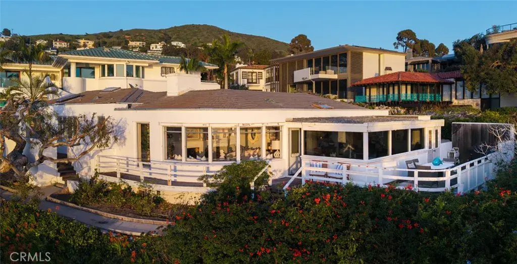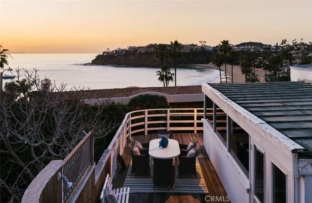 Offered for the first time since 1966, this single-level Emerald Bay residence presents a rare opportunity to own a legacy coastal property with extraordinary ocean views. Once owned by a Hollywood actress during Laguna Beach’s storied creative era, the home offers timeless character, privacy, and an irreplaceable setting. Situated on an approximately 8,100-square-foot lot, the home spans just over 2,300 square feet with three bedrooms and a study, all on one level. Panoramic views extend over Emerald Bay’s private beach to the Pacific Ocean and Catalina Island beyond, complemented by the sound of crashing waves. A large front courtyard and expansive ocean-view deck provide ideal spaces for entertaining and outdoor dining. The property is conveniently located just above a community stairway with direct beach access and only a few homes from the south gate for easy entry and exit.