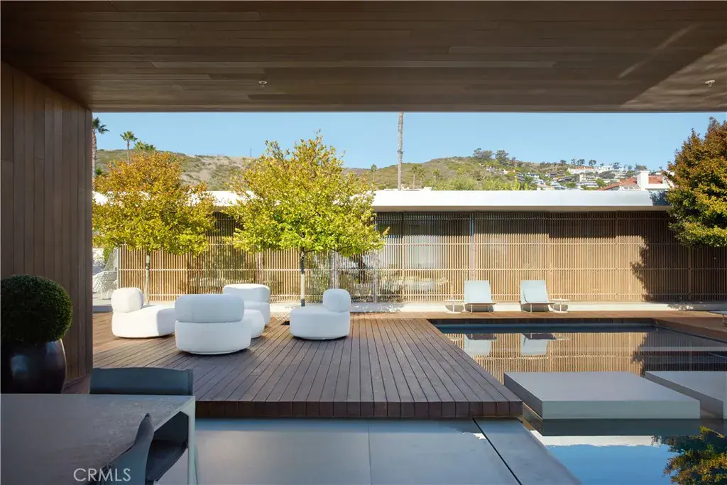Sculptural architecture meets refined coastal living in this award-winning custom Horst Architects residence inside Irvine Cove, Laguna Beach’s most exclusive private community. Clean modern geometry, dramatic scale, and warm natural materials come together with effortless sophistication. Upon arrival, a bold architectural procession unfolds along floating steps skimming an infinity-edge pool, moving past linear fire features and sleek outdoor lounges before reaching an oversized glass pivot entry.