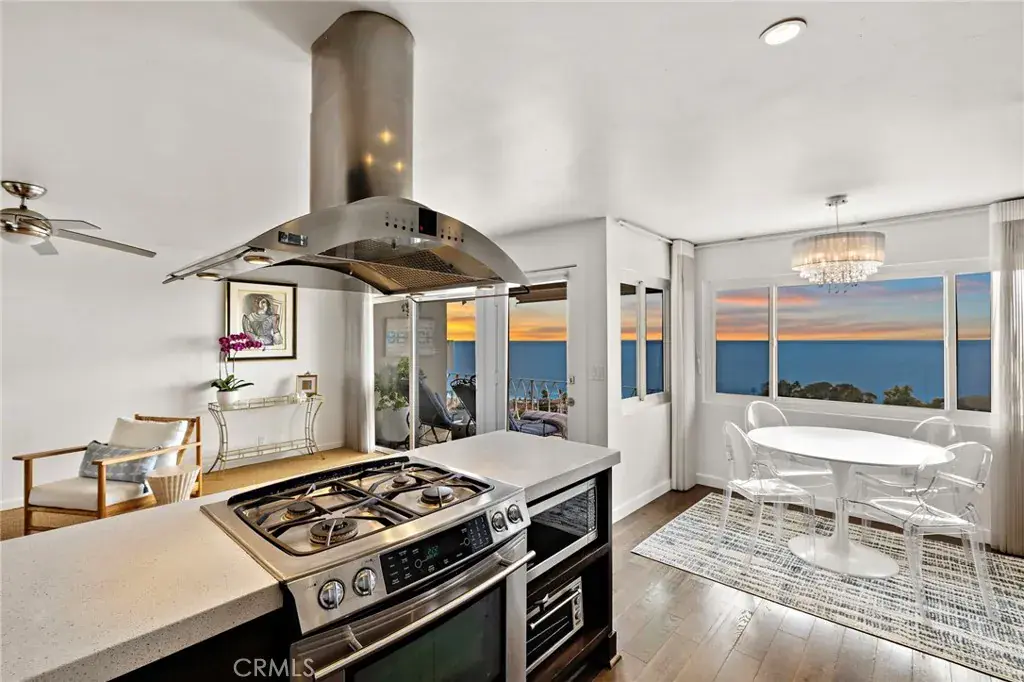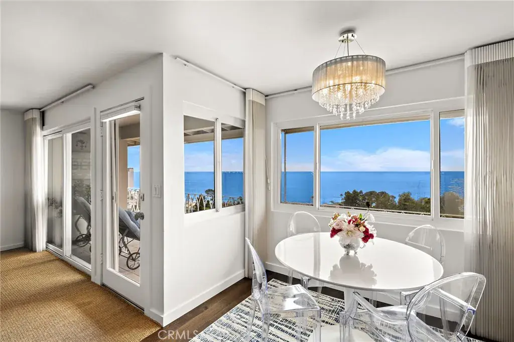 Perched above the famed Montage Resort in one of Laguna Beach’s most desirable coastal locales, this two bedroom, one bathroom condo offers stunning panoramic ocean views and a relaxed coastal lifestyle. From the kitchen, dining area, living room, and veranda, enjoy sweeping, unobstructed vistas of Catalina, Aliso Creek, and whitewater surf, along with vibrant sunsets and city light views that stretch up the coast toward Rancho Palos Verdes. Inside, the kitchen features frosted glass cabinetry, Caesarstone countertops, a custom Julian cedar dining bar, stainless steel appliances, and hardwood flooring. A cozy dining nook is positioned to make the most of the view, while the open concept living space brings in tons of natural light and creates a seamless flow for everyday living or entertaining. Glass sliders lead to a spacious veranda outfitted with remote-controlled shades, designed to filter sun without compromising the view. Central air conditioning adds comfort on warm summer days. The bathroom is thoughtfully designed with Italian cabinetry, Philippe Starck fixtures, dual vessel sinks, a walk-in glass shower, standalone soaking tub, heated towel rack, and two skylights for natural light. The primary bedroom includes a walk-in closet, while the second bedroom offers a mirrored closet and French doors that open to the living room and capture ocean views when open. Additional highlights include double-paned windows throughout, a private one-car garage, fresh interior paint, and access to a year-round heated community pool. This home offers the perfect opportunity for a full time residence, second home, or investment in one of Southern California’s most sought after communities, just moments from renowned beaches, galleries, restaurants, hiking trails, and more!