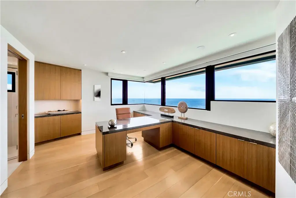 Dedicated entertaining space features a custom semicircular movie theater with unparalleled acoustics, billiard room with seated bar, 420-bottle wine cellar, video game room & bathroom, gym, locker room and steam/sauna. Gourmet kitchen is equipped with top-of-the-line Miele and Viking appliances with a bulthaup hood fan. Elevator serves all four levels and three-bay garage, a rarity in this exclusive area. This is truly the ultimate in Laguna Beach luxury — and it’s waiting for you.