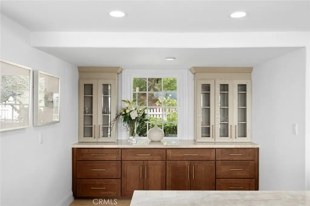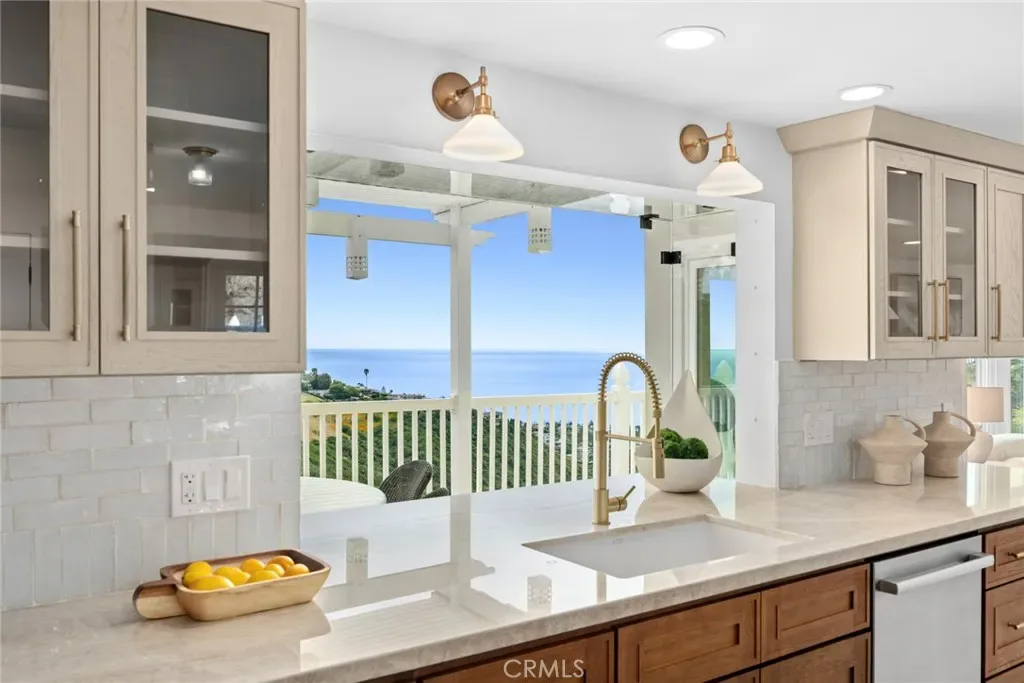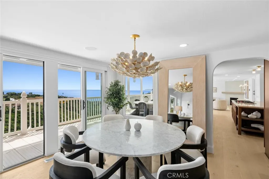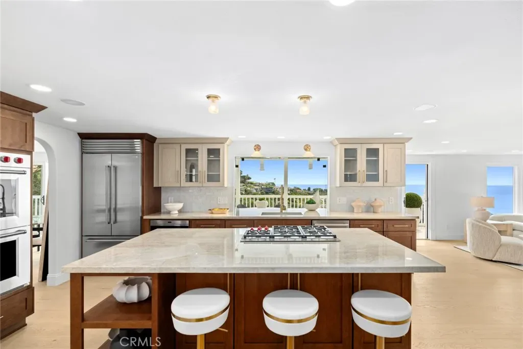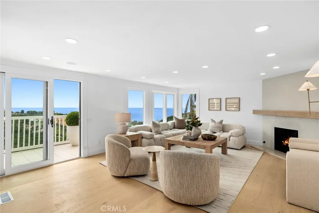 Newly and fully upgraded, this exceptional residence at 1675 Tahiti Avenue captures the essence of coastal living in Laguna Beach. Spanning approximately 3,843 square feet on an expansive 30,320-square-foot lot, the home offers five bedrooms plus an office, thoughtfully designed to embrace its breathtaking setting. From the moment you enter, unobstructed panoramic views unfold stretching from the rolling hills of Laguna Beach to the Pacific Ocean. Natural light fills the main living areas through large picture windows and multiple sliding glass doors, creating a seamless transition to the expansive rear deck where indoor-outdoor living takes center stage. The open concept layout is designed for both refined entertaining and everyday living. A modern kitchen anchored by Taj Mahal quartzite and a central island features a Wolf cooktop, double ovens, and a Sub-Zero refrigerator flowing effortlessly into the dining and living areas, all oriented to capture the home’s sweeping ocean vistas. Whether enjoying vibrant sunsets over the water or relaxing by the fireplace on cooler coastal evenings, the home offers an environment that is both inviting and sophisticated. The upper level includes four spacious bedrooms and a laundry room. The primary suite serves as a private retreat, offering ocean views, direct access to a private deck, and a spa-inspired bath with a custom walk-in closet, soaking tub, and oversized shower. The lower level provides a flexible space that can function as a private apartment-style suite with an en-suite bath or as a media room or additional lounge. Outdoor spaces further enhance the property with a rare, generous flat area that maximizes the oversized lot, ideal for entertaining, creating an outdoor pavilion, or simply enjoying the surrounding ocean vistas and sunsets. Located in the highly sought-after Mystic Hills neighborhood, the home is moments from parks, hiking trails, award-winning schools, and Laguna Beach’s vibrant downtown, known for its renowned restaurants, boutiques, and galleries. Experience coastal living at its finest in one of Laguna Beach’s most desirable settings.