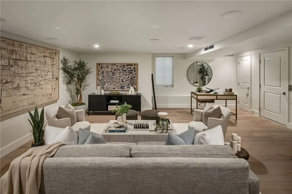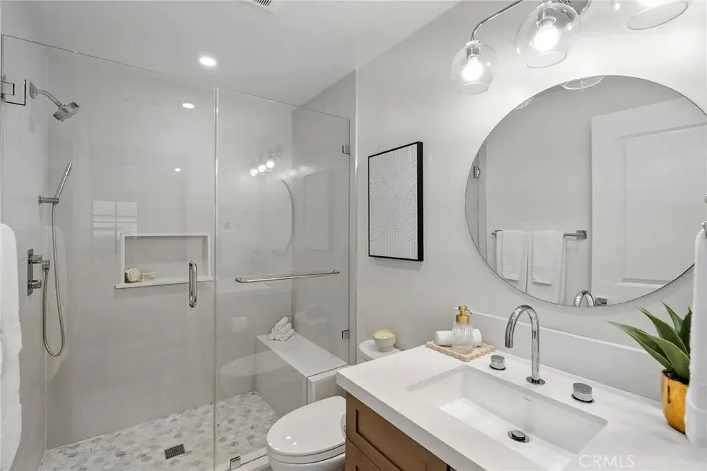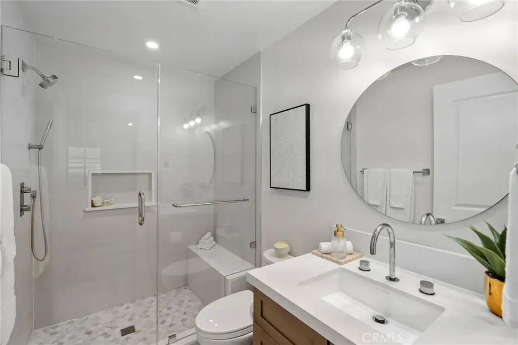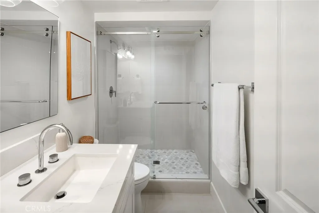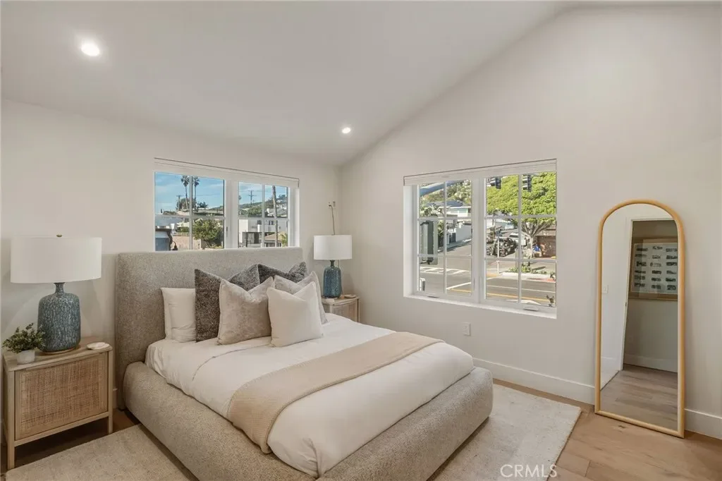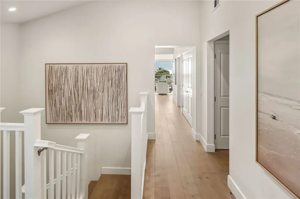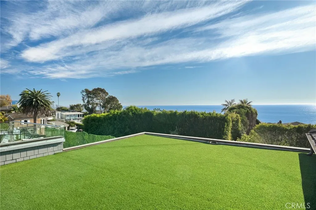 This contemporary residence in The Crescent Collection showcases cinematic views spanning the ocean, coastline, and Catalina. Designed for seamless indoor-outdoor living, an impressive 648-square-foot deck sets the stage for elevated entertaining, while a private elevator offers effortless access from the garage level, with stops at each floor. Interiors are finished with a refined mix of stone, tile, and wood flooring, recessed lighting, and a sleek modern fireplace anchoring the main living space. The chef’s kitchen is thoughtfully designed around a large center island with bar seating and features a pot-filler faucet for added convenience, complemented by Thermador appliances and integrated smart home and audio-visual enhancements, including built-in speakers. The primary suite is a true retreat with sweeping ocean views, a spa-inspired bath featuring a soaking tub positioned to take in the coastline, dual sinks, and a walk-in shower, plus a generous walk-in closet. On the first level, a flexible bonus space offers endless possibilities as a home office, additional living room, or private workout studio. Automatic gated entry enhances privacy, and the home is completed with covered, assigned parking and an oversized private garage with direct interior access, all moments from the beaches, galleries, dining, and the coastal lifestyle that defines Laguna Beach.