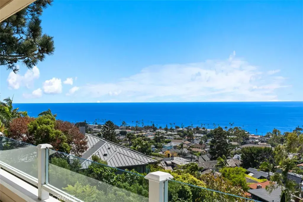 Price Improvement!! Perched within the gated enclave of Allview Terrace, this rare offering captures the very best of Laguna Beach living — sweeping ocean, coastline, and hillside views paired with privacy and seclusion, all while being just moments from downtown and the beach. A long, private driveway sets the stage for this special residence, creating a sense of arrival and exclusivity. Upon entry, you’re greeted by expansive living spaces oriented to take in 280° views stretching from the southern coastline and Hotel Laguna to Catalina Island, North Laguna, Shaw’s Cove, and the green hills of the Dartmoor Hiking Trail. Walls of Andersen windows and oversized sliding glass doors flood the interiors with light and seamlessly connect to spacious view decks — perfect for entertaining or simply enjoying Laguna’s famed sunsets beneath the silhouette of a Torrey pine. The main living area features wood flooring, a centerpiece fireplace with a custom mantle, and a wet bar, while the adjacent dining area and kitchen are designed to maximize the panoramic setting. A powder room and laundry are also on this level. The cozy library/den, complete with floor to ceiling built-in shelving, fireplace and skylight, offers a quiet retreat for reading or work. Two en-suite bedrooms are located on the main level — one with French windows and doors opening to balcony deck and ocean views, the other with a skylight and full bath. Upstairs, the primary suite provides a private sanctuary with vaulted ceilings, a viewing deck over North Laguna, walk-in closet, and a spa-like bath featuring dual sinks, a soaking Jacuzzi tub, walk-in shower, and private water closet. A bonus office/den area completes this upper retreat. Set on an oversized lot with mature coastal landscaping and adjacent to the historic Hortense Miller Garden, the property also offers a two-car garage and parking for up to six additional vehicles.