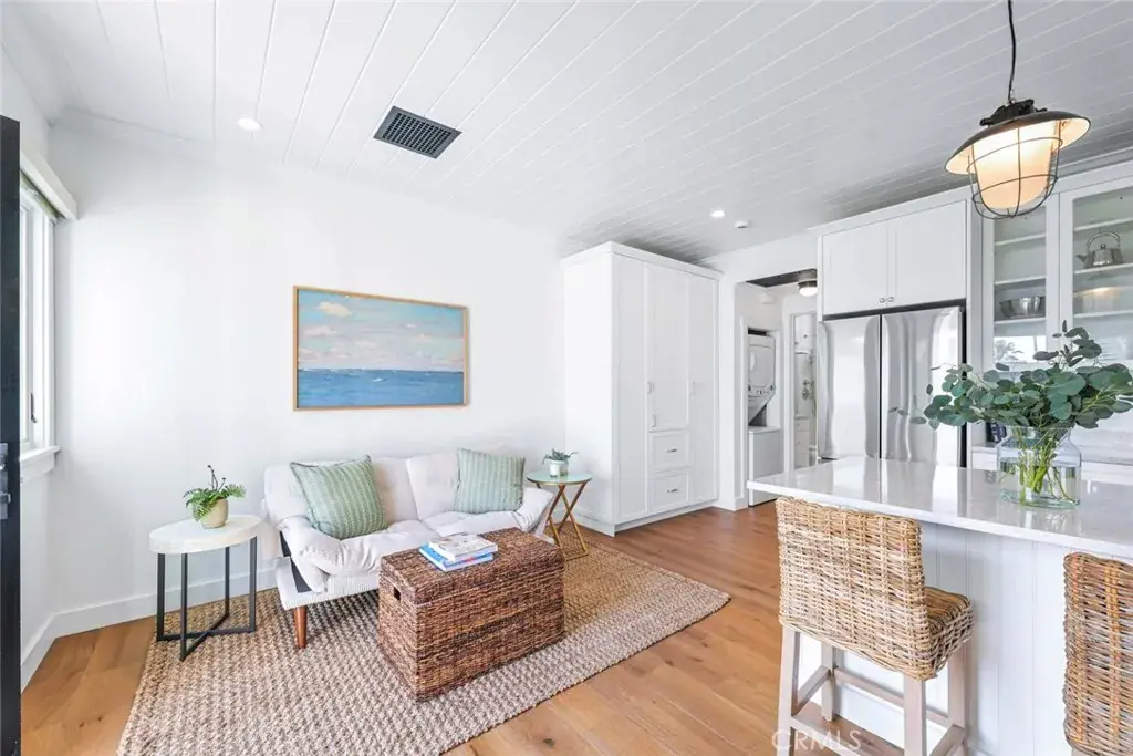 Enjoy the freshly designed interior with a light and bright open layout, complete with a fully stocked kitchenette, dishes, utensils, and a flat-screen TV for cozy nights in. The cottage features approx. 600 square feet of thoughtfully designed space, with ocean and garden courtyard views visible from the living room and kitchen. Step out to your private patio, perfect for morning coffee, evening wine, or soaking up the sounds of the sea.