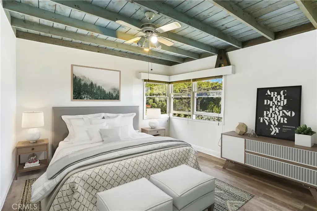 Ocean and canyon views from this amazing COTTAGE! Fantastic North Laguna Location, home is on a dead-end street in a very quiet neighborhood, perched high on the hills overlooking Laguna Beach. Incredible street to street, single loaded corner lot with tons of parking! 3 bedrooms, 2 bathrooms, plus bonus room and an office area with storage. 1/2 mile to Main Beach, close to parks & restaurants. Hiking / walking trail head for Laguna Coast Wilderness Park is located just across the street. Fabulous chef’s kitchen with granite counters, custom backsplash, professional 5 burner gas stove, stainless dishwasher, stainless refrigerator, tons of storage and an open-counter breakfast bar. Enjoy vaulted, wood beamed ceilings and huge windows that look out to the Ocean and Laguna Canyon! This cottage is totally private with a fenced in yard and spacious rear patio that is perfect for entertaining. Yard and patio have pavers that start at the driveway and wrap around the house to include the front door, patio, side yard and lower-level entrance. Side yard has amazing canyon and city lights views as well as a view deck. Office nook and 3 beds including primary bedroom and full bathroom on main level. Bonus room with closet and second 3/4 bath have private entry and are below grade. The parking options are unmatched for Laguna Beach: Oversize 1 car garage with storage, driveway and tons of street parking right outside your front door. Cottage features full size laundry, central air conditioning and ceiling fans. Truly a Must-See home! Lease Includes washer, dryer, refrigerator, trash collection and gardener. This is a single-family home on a large lot. NOT a condo, duplex or back house. Come fall in love with this adorable beach cottage located in the best neighborhood in Laguna Beach. *** Walk through video is available by request ***