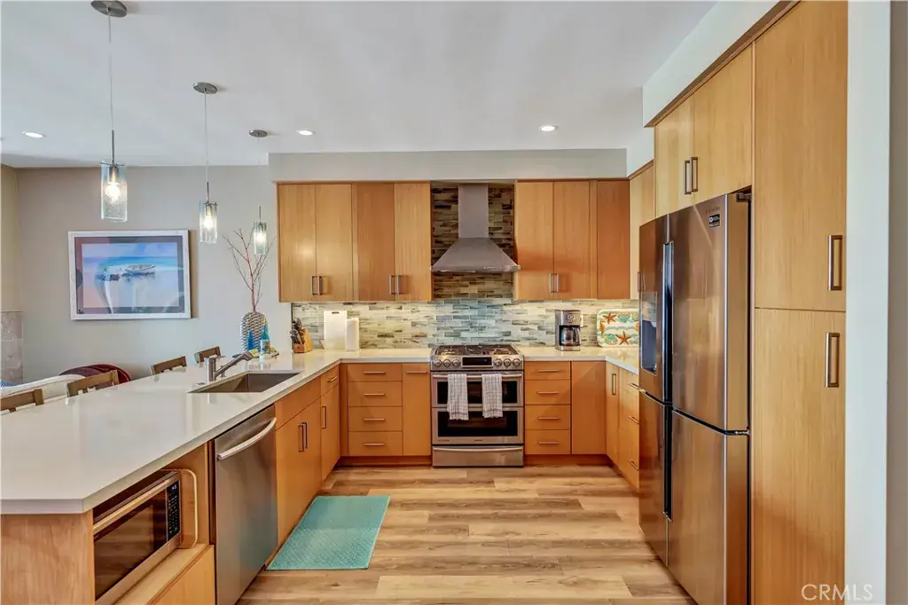Monthly rental available in Laguna Beach! These PANORAMIC OCEAN VIEWS are unprecedented. Enjoy the ocean breeze as soon as you walk in due to your accordion sliding glass doors on the balcony. The kitchen was completely reconfigured during the renovation so now you can enjoy the view as you cook. Enjoy your dinner at home watching the beautiful sunset while dining al fresco, or dine inside via candlelight with the sounds of the waves crashing onto the sand and sea lions calling out to each other. Top of the line appliances have been installed for the new tenant. You’ll love the open concept kitchen + living room which allows for better flow of space. Both bathrooms have been stunningly updated with neutral stone and completed with walk in showers. Master bedroom retreat comes with all new furniture for use including bed, dresser, and end tables. Private indoor laundry room with washer and dryer included. Guest bedroom can be reconfigured to suit queen bed. Walk across the street to Diver’s Cove, or stroll the beautiful ocean walkways through Heisler Park to Main Beach and downtown where you will find the quaint artist community that Laguna Beach is known for. Walk directly across the street to do your marketing, pick up a latte and croissant, have your nails done, get a massage, take a yoga class, or order a pizza.