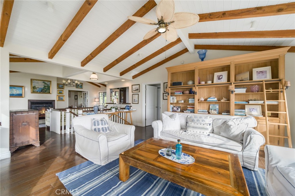 Experience breathtaking panoramic views of the ocean, Catalina Island, and stunning sunsets from this exquisitely furnished coastal retreat. Nestled in the “Ocean View” custom neighborhood steps from renowned Montage Resort and “Treasure Island’ beach, this meticulously updated Nantucket style home represents the perfect example of a luxurious beach-chic Southern California lifestyle. The home’s Chef-inspired Swedish kitchen is a culinary masterpiece, featuring custom cabinetry by Kvänum, a La Cornue range, and top-of-the-line appliances. The formal dining room, complete with a cozy fireplace and views of the ocean and garden, set the stage for intimate gatherings or elegant entertaining. On the main level, you’ll find two beautifully appointed bedrooms and bathrooms, each offering queen beds and serene charm. A versatile tropical-inspired den/media room, which can also serve as a guest room, opens to a picturesque back terrace surrounded by lush gardens. Upstairs, the expansive Great Room boasts high-beamed ceilings and sweeping ocean vistas. Step onto the spacious patio deck to enjoy alfresco dining, morning coffee, or evening cocktails while taking in the view of Catalina Island. Adjacent to the Great Room, a charming office/den and a cozy sitting area with a fireplace and custom built-in bar provide a perfect balance of work and relaxation. The luxurious primary suite is a true sanctuary, featuring a king-sized canopy bed, serene ocean views, and access to a private terrace overlooking the verdant backyard. Outdoors, the expansive back terrace is an entertainer’s dream, complete with a dining area illuminated by enchanting string lights, a fire pit, and a BBQ for alfresco gatherings. The large, enclosed backyard features a private ocean view deck perched above the lush lawn and beautifully manicured gardens, offering a private oasis for relaxation and play. Located just a short stroll from Treasure Island Plaza, world-class dining, the Montage Resort, and pristine beaches, this home also enjoys close proximity to Lang Park and a free trolley stop for effortless exploration of Laguna Beach.