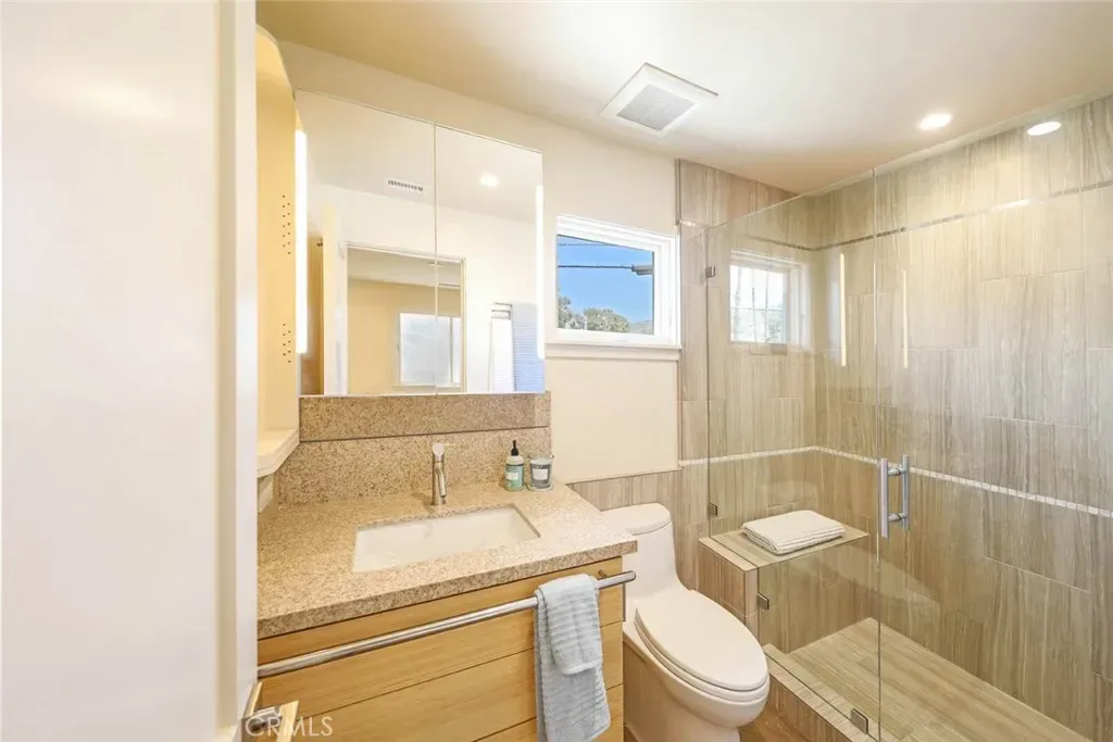 This sleek, contemporary space features central AC and heating for year-round comfort, along with a fully updated kitchen equipped with blue quartz countertops, a Bosch dishwasher, microwave, induction range, and a Fisher & Paykel refrigerator. The bathrooms showcase elegant floating vanities and luxurious MGS Italian-made faucets. High-end wood-look tile throughout enhances the sophistication and ease of maintenance.