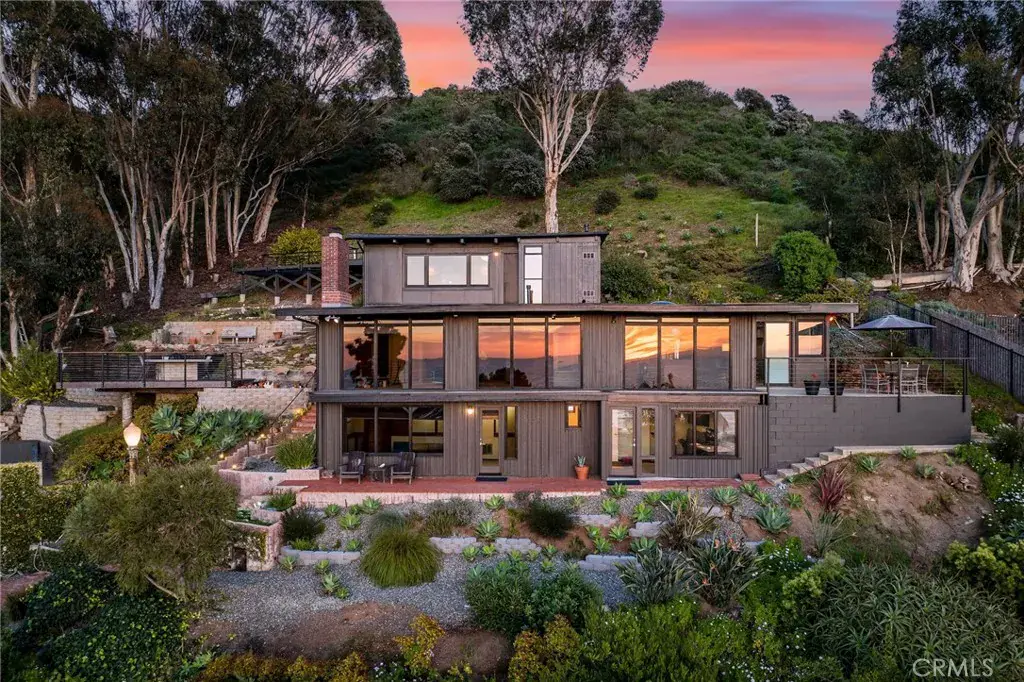Welcome to your coastal oasis perched atop the apex of 3rd Avenue in the heart of the South Laguna Village. This midcentury masterpiece seamlessly blends custom design and exotic woods with panoramic ocean views from nearly every room on all three levels. A rarely sold retreat in one of Southern California’s most coveted locales.