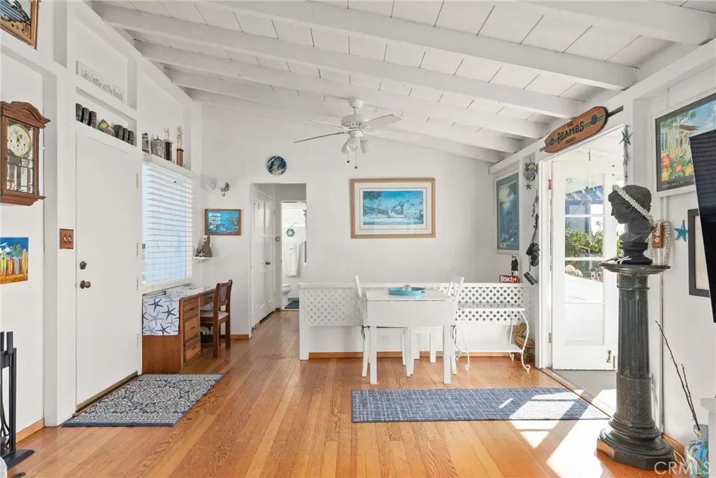 Experience breathtaking panoramic ocean views from this charming, fully furnished 2-bedroom, 1.5-bathroom cottage in Laguna Beach. This cozy retreat features two spacious balconies with stunning views of Aliso Creek Beach and the Montage, ideal for outdoor dining and relaxation. Just a short walk to the beach through a private easement and tunnel, this delightful garden cottage offers convenience and tranquility. Inside, you’ll find a modern granite kitchen, gleaming hardwood floors, and two cozy fireplaces, perfect for unwinding after a day by the shore. The expansive, park-like backyard provides ample space for outdoor enjoyment. Off-season pricing is negotiable.