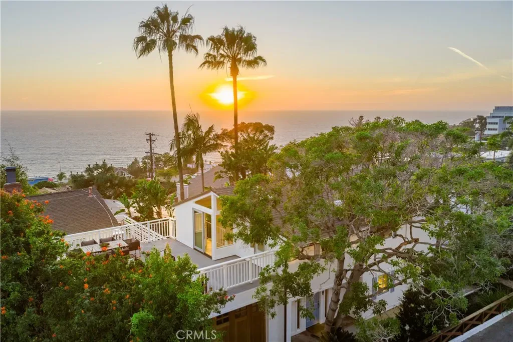 Tucked away on a tranquil cul-de-sac in South Laguna Village, just moments from the iconic Thousand Steps Beach, this property balances sophisticated 21st-century upgrades with the timeless allure of its 1930s origins. Artfully reimagined to honor its original character, the curated material selection includes white oak, marble, and book-matched quartz, transforming this three-bedroom cottage into a sophisticated coastal retreat. Beneath the vaulted, wood-beamed ceilings of the upper, main living level, the spaces flow effortlessly toward the expansive deck ensuring the ocean remains a constant, luminous backdrop against the home’s historic bones. Elevated to capture panoramic views of the Pacific and the silhouette of Catalina Island, this outdoor sanctuary is a perfect setting for al fresco entertaining or quiet enjoyment. Adjacent to the ocean-facing living area with a fireplace, the designer kitchen features white inset cabinetry, professional Thermador appliances, and a seamless pass-through window that dissolves the boundary between the indoors and the elements. Also on this floor, the tranquil primary suite offers a dedicated space for a private lounge or office, and an adjacent bathroom full of light. An additional living area greets all visitors on the lower level, where either of the ample secondary bedrooms, including one with access to the outside, can function as sleeping quarters or a home office. The exterior is equally distinguished, with a custom mahogany garage door and mature landscaping to accentuate the property’s timeless cottage appeal.