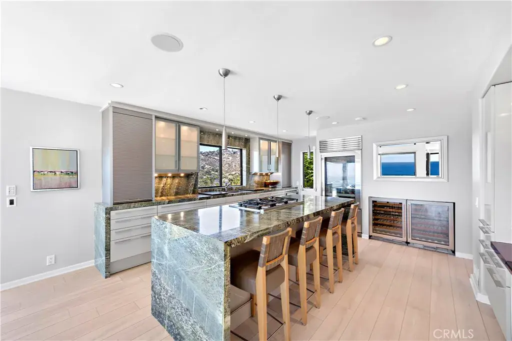 Welcome to a one-of-a-kind Laguna Beach retreat where style, privacy, and jaw-dropping views converge. Resting on a hilltop promontory along Summit Drive, this extraordinary contemporary residence was crafted by Morris Skenderian and offers uninterrupted panoramas of ocean waves, coastline cliffs, sparkling city lights, and serene hillsides. Every space of the home was designed to impress-walls of glass dissolve into open-air terraces, creating a seamless indoor-outdoor lifestyle. Entertain in grand style on the 1,000 sq. ft. travertine patio with sweeping lawns, or retreat to your private ocean-view fitness area for quiet reflection. The updated kitchen gleams with custom finishes, while dual primary suites promise comfort, luxury, and their own unforgettable vistas. Professionally landscaped and tucked away with no immediate neighbors, this residence provides a sense of true escape while remaining moments from the vibrant culture of Laguna Beach. An iconic lease offering unlike anything else on the coast.