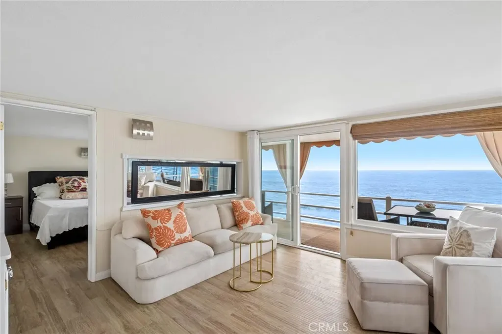 Oceanfront living in the heart of Laguna Beach’s HIP District. This light-filled 1-bedroom, 1-bath residence offers approximately 600 square feet with sweeping, panoramic ocean views that span from left to right, showcasing mesmerizing Catalina sunsets. Upon entry, you’re immediately welcomed by an airy interior framed by sparkling coastal vistas, creating a seamless connection to the sea. Thoughtfully designed, the home features a generous bedroom with a walk-in closet and a well-proportioned living space oriented to capture the ever-changing ocean backdrop. A private deck extends from both the living room and bedroom showcasing an idyllic setting for morning coffee accompanied by the soothing rhythm of the waves or relaxed evenings overlooking the horizon. Additional highlights include private gated access to the sand and one dedicated parking space. Ideally situated just moments from Laguna’s renowned boutiques, galleries, and restaurants, this residence offers an effortless blend of refined coastal living and vibrant village convenience.