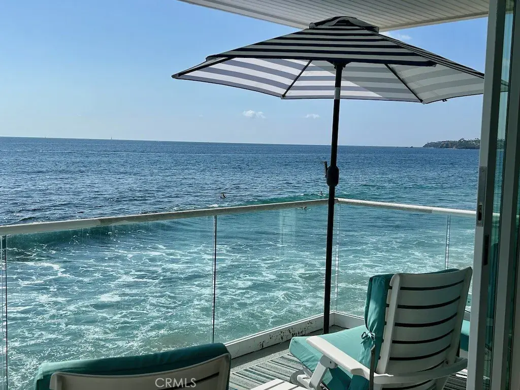 Beautiful furnished ocean front monthly or long term rental. Available starting April 1, 2026. Spacious and bright one bedroom, one bath plus office nook lower unit on Brooks Beach in Laguna. Enjoy the large balcony right over the beach with 180 degree panoramic ocean view. Watch the surfers, dolphins, and amazing sunsets. Decorated in a soothing and relaxing beach inspired style. Living room has lovely fireplace and large flat screen. Master bedroom has walk in closet and TV. Large master bath with dual vanities. Hi Speed wireless Internet access. Great location with walking and trolley distance to tons of restaurants, art galleries, Main Beach…we are on the Brooks Street Beach (famous Surfing Beach) with Cress Beach (great family beach) to our left. Nicely furnished with gorgeous ocean views. Bright and airy with lots of windows and mirrors for maximum ocean views. Private stairs down to the beach. One car garage parking and utilities plus high speed internet included. Access to shared EV charger. Rent by the month as a short term rental or will consider long term lease. Available starting April 1, 2026. Summer rates apply June through August for short term rentals.