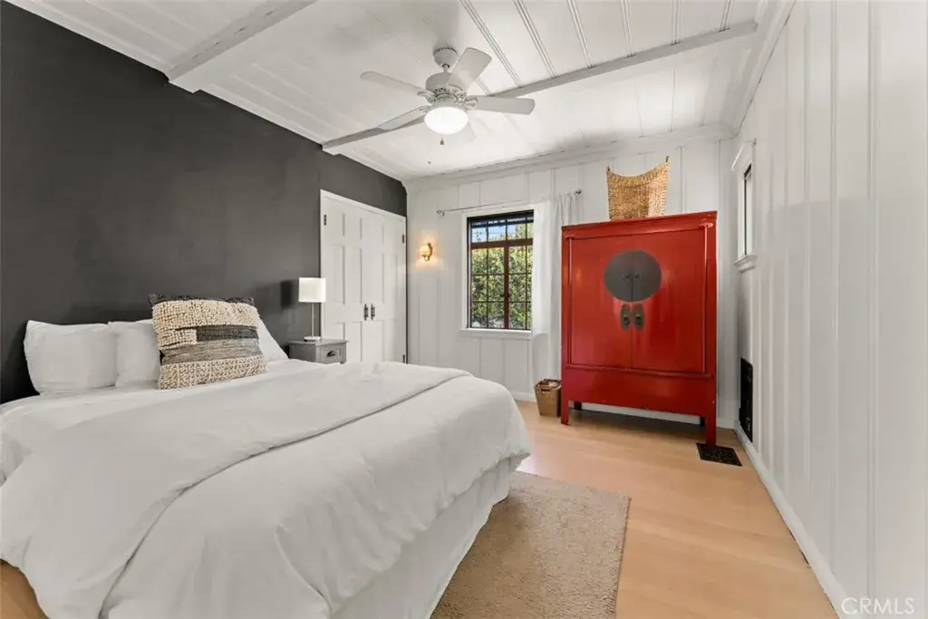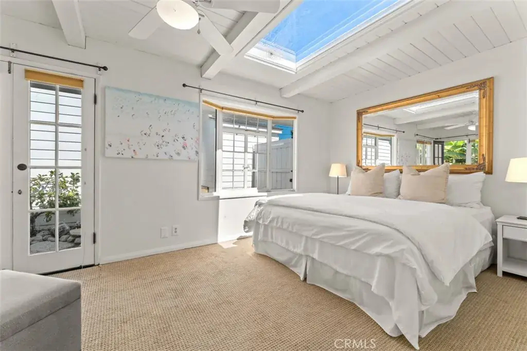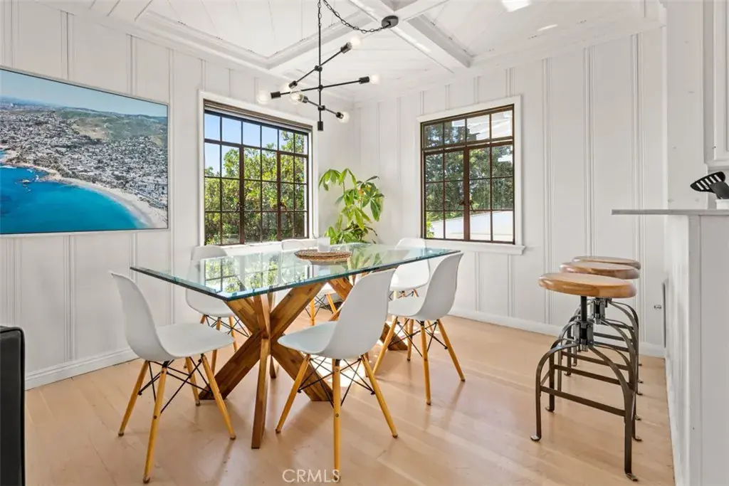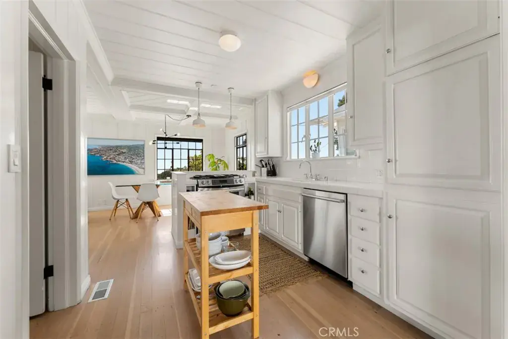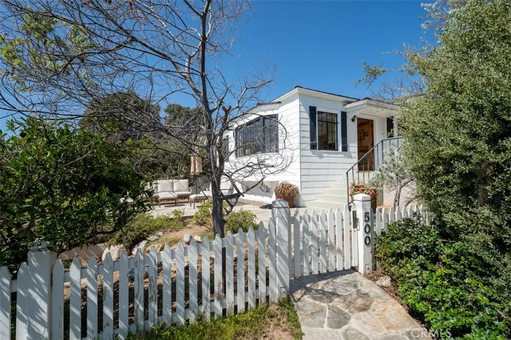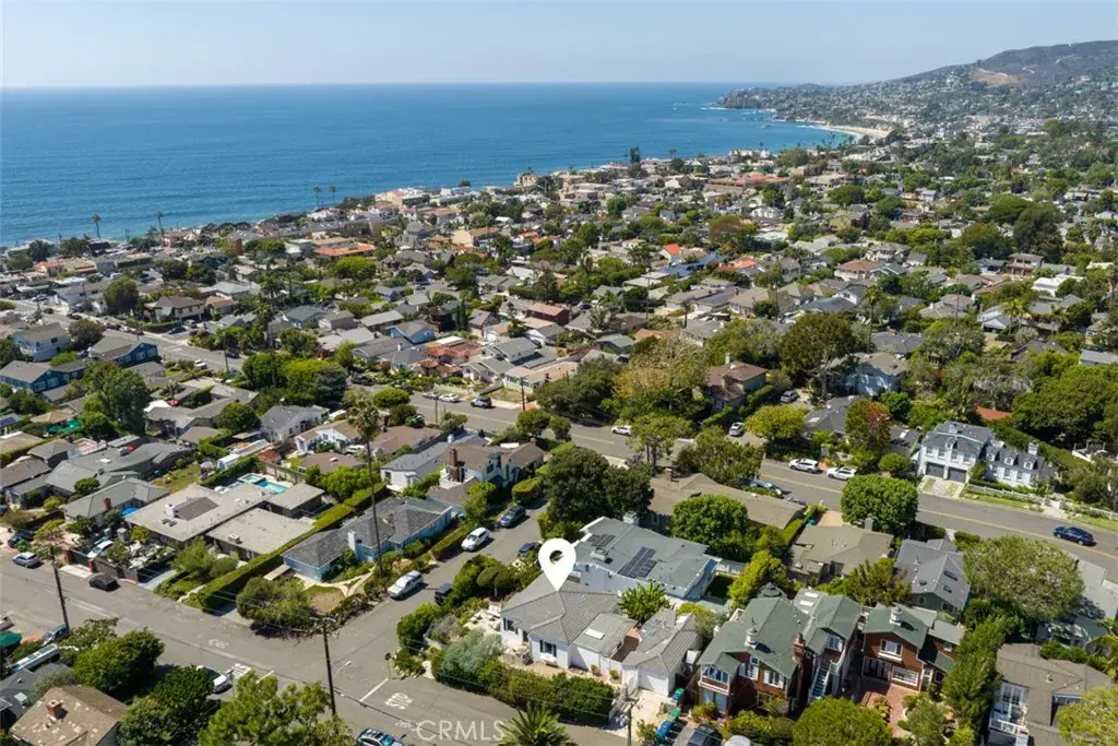 Avail for 30+ days, call for longer leases. Completely furnished turnkey with air conditioning, bi-monthly house keeping and utilities included! Pristine Ocean View Cottage on a Large Corner Lot in the Heart of Laguna Village. Completely remodeled and restored in a fantastic location just three blocks up from Laguna’s popular beaches, restaurants, shopping & Bluebird Park. The main house consists of 2 bedrooms and 2 baths with an inviting ocean view from the living room, dining room and kitchen. Restored white oak hardwood floors throughout, with carved wood beam ceilings and an updated gourmet kitchen offers a clean open layout. The guest house offers its own detached quarters featuring a skylight, queen size bed, kitchenette and a full bath with shower. This warm and inviting home and property is situated on a large corner lot with flagstone walkways, front porch, 2 patios, as well as a courtyard brick patio off the kitchen and master bedroom and fruitful plantain trees, citrus trees and an macadamia nut tree. The front patio offers the perfect spot for outdoor entertaining with beautiful ocean, Catalina Island and sunset views with an a adjacent patio fit with a 6 top teak table and chairs, and gas grill.