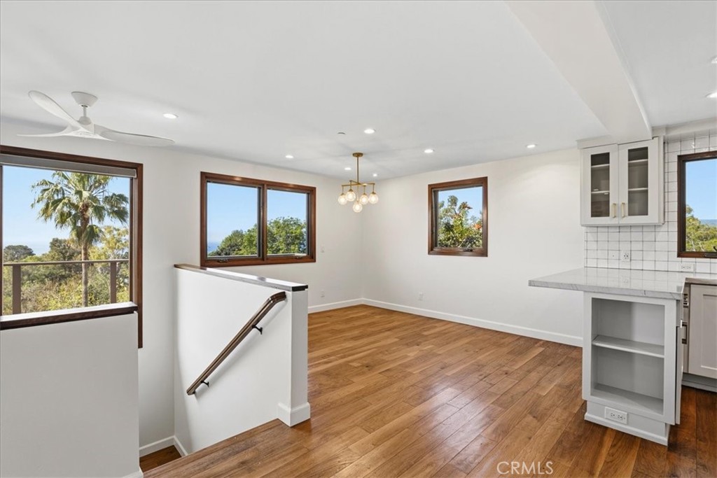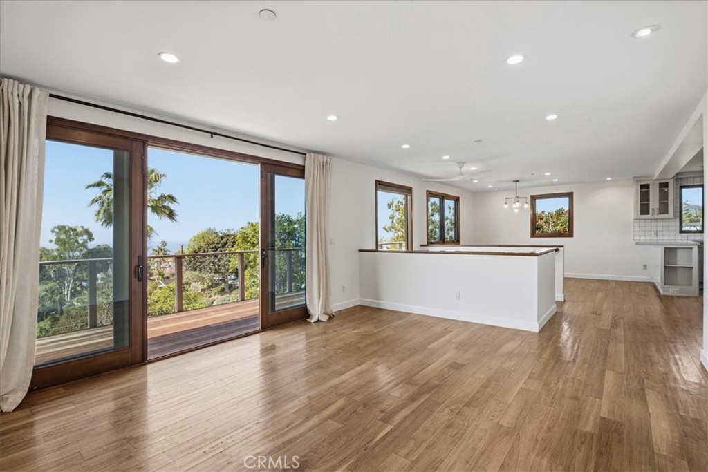 Welcome to coastal living at its finest in the heart of Laguna Beach. This exceptional residence offers a rare combination of ocean views, comfort, and everyday convenience in the highly sought-after Village neighborhood. The home features five bedrooms and three-and-a-half bathrooms—a rare offering in Laguna Beach—thoughtfully designed for both comfortable family living and effortless entertaining. On the top level, a light-filled living room showcases stunning Pacific Ocean views through a wall of windows and features rich hardwood flooring and a cozy fireplace, creating a warm and inviting gathering space. The gourmet kitchen is appointed with quartzite countertops, custom cabinetry, and stainless-steel appliances—perfect for preparing meals while staying connected with family and guests. Multiple outdoor spaces—including Brazilian Ipe hardwood view decks on all three levels—provide ideal settings for relaxing, dining, and enjoying the coastal breeze. The flexible floor plan includes three bedrooms on the main living level, including a primary suite featuring a spa-inspired bathroom with an ocean-view soaking tub, walk-in closet, and direct access to a peaceful outdoor deck.