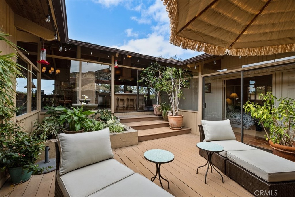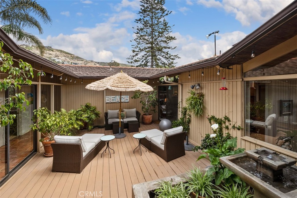 Furnished rental opportunity in the community of Three Arch Bay, one of Laguna Beach’s most desirable guard-gated coastal locations. This comfortable and inviting beach home offers ocean views and is just a short stroll to the community’s private beach access. The light-filled living room features vaulted ceilings and abundant natural light, creating an airy coastal atmosphere. A remodeled kitchen opens to an additional living area / den – TV room for relaxing along with adjacent deck, ideal for indoor-outdoor living. A sunny interior atrium provides a charming space for morning coffee or quiet relaxation. The primary suite includes a king bed, vaulted ceilings, and a beautifully remodeled bath with limestone floors, limestone countertops, and custom cabinetry. Guest accommodations include two full beds in the second bedroom and a full beds in the third bedroom, offering comfortable space for family and guests. Residents of Three Arch Bay enjoy exclusive access to a sandy beach, tennis and basketball courts, clubhouse, park, and scenic surroundings, all within a secure guard-gated setting. Ideally located just minutes from the Ritz-Carlton and Waldorf Astoria in Monarch Beach, Dana Point Harbor, and the restaurants, galleries, and beaches of Laguna Beach. Available for 30–60 day furnished rental with flexible dates.