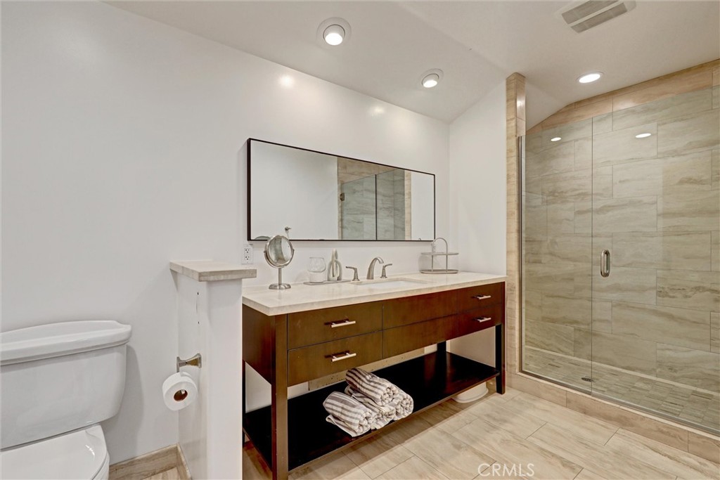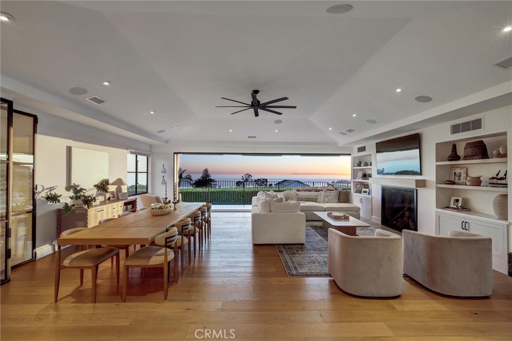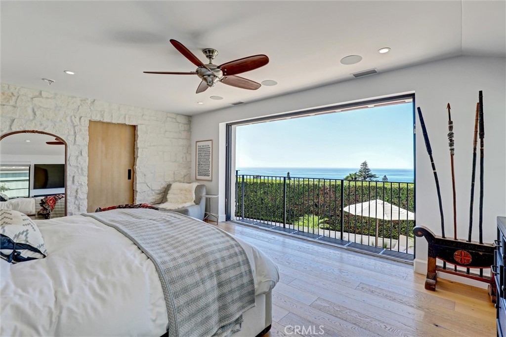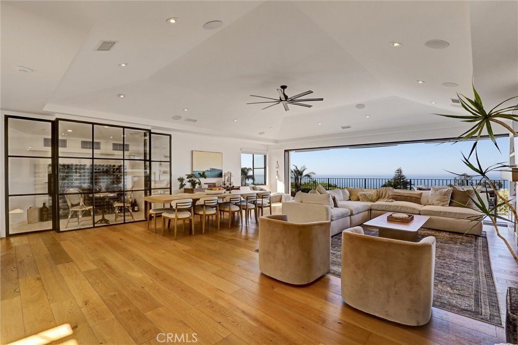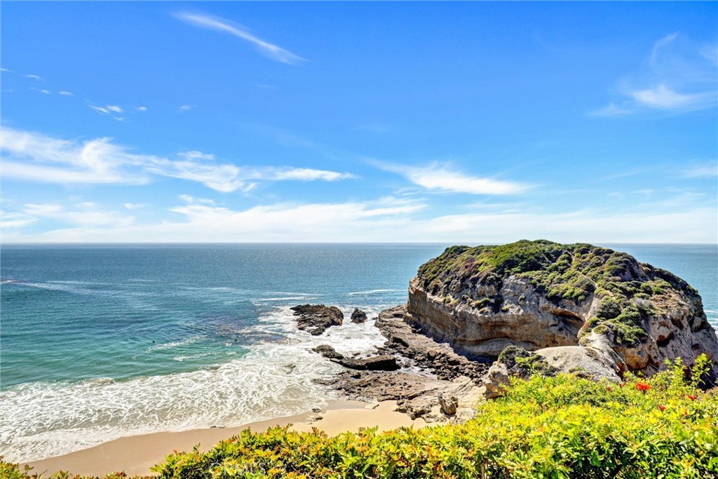 SUMMER RENTAL – 30 days minimum – Available June – September 2026. Nestled within the prestigious guard-gated community of Three Arch Bay, this contemporary masterpiece offers an exceptional summer vacation experience defined by luxury & design. Approximately 4,158 square feet, this 5-bed, 4.5-bath residence is thoughtfully designed with a reverse floor plan, allowing the home to live like a single story. The main living spaces—including the kitchen, living room, ocean-view deck, and front entertainment yard—are all located on the entry level. The open-concept living area is anchored by wide-plank white oak flooring & a retractable sliding glass wall that seamlessly blends indoor & outdoor living. Relax on the comfortable & cozy L-shaped sofa while enjoying sit-down panoramic views stretching across Catalina Island, San Clemente Island, & the iconic Dana Point Headlands. The chef’s kitchen is both functional & stunning—featuring a 10-burner gas range, double refrigerators, double dishwashers, dual sinks, & an oversized eat-up island. Elegant marble countertops, floating white oak shelving & custom cabinetry in white oak complete the space. Just off the kitchen & dining area, a temperature-controlled wine room sits behind a sleek custom glass wall, perfect for summertime entertainment. The entry-level primary suite is a private retreat, offering lay-down ocean views through a sliding glass wall. The suite includes a spacious walk-in closet with its own stackable laundry, as well as a luxurious ensuite bath with a large walk-in shower, a freestanding soaking tub, & a private enclosed water closet. An additional guest bedroom with ensuite & a stylish powder room complete the upper level—totaling two bedrooms, two ensuite baths, & a powder bath on the main floor. The floating staircase leads to the lower level, where a comfortable family TV & playroom opens directly to the backyard. Downstairs, you’ll find three additional generously sized bedrooms, including a fun bunk room with three beds, along with two full bathrooms & a separate full-sized laundry room. The backyard is designed for privacy & leisure, surrounded by lush green hedging & offering a variety of outdoor amenities including cornhole, ping pong, & a comfortable seating area. As an added bonus, the rental includes a golf cart for easy access to the private beach & community amenities, allowing you to fully enjoy the coastal lifestyle that makes Three Arch Bay so sought after.