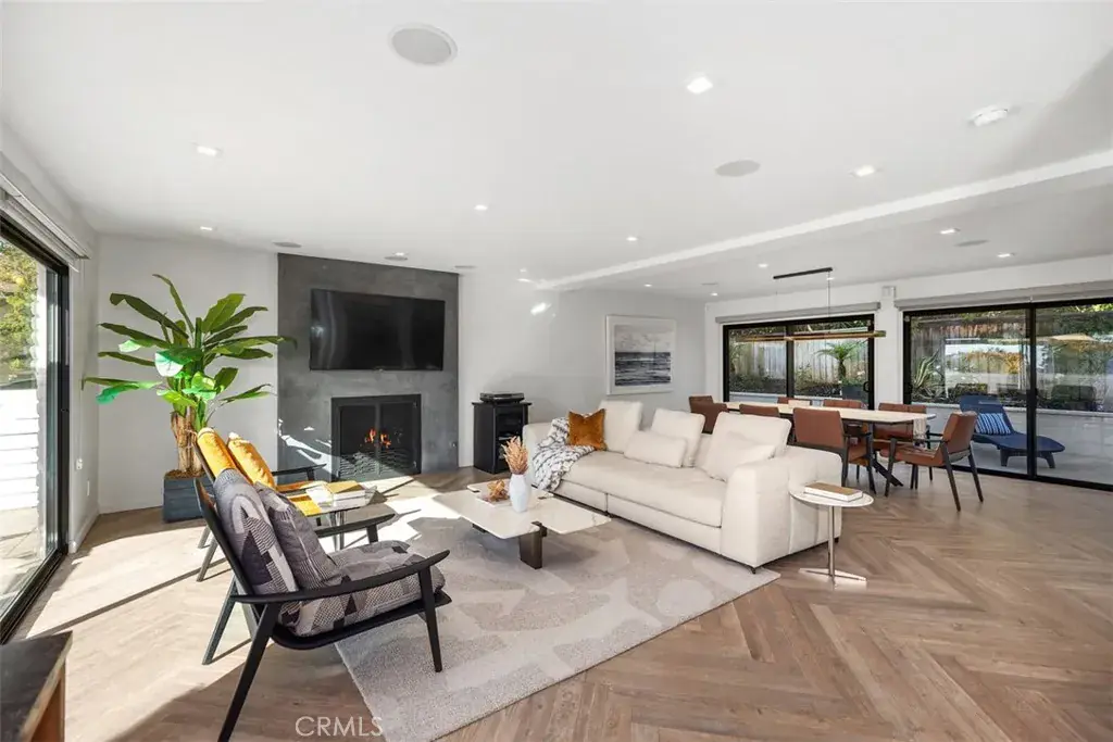 Welcome to 2870 Zell Drive, a beautifully detailed coastal retreat in Laguna Beach’s highly desired Top of the World neighborhood. Positioned to capture ocean, Catalina, and sunset views, this home offers the perfect blend of relaxed comfort and timeless charm. The main level features an open-concept layout with chevron-patterned hardwood floors, a statement fireplace, and a floor-to-ceiling glass-enclosed wine display. The chef’s kitchen includes Thermador stainless-steel appliances, a built-in refrigerator, walk-in pantry, and a center island, all opening to the dinning and family room plus a spacious front patio ideal for indoor-outdoor entertaining. Upstairs, the primary suite showcases ocean and sunset views, a private balcony, and a spa-inspired bath with a free-standing soaking tub and designer finishes. Two additional bedrooms and a full bath complete the second level, along with an expansive ocean-view deck featuring a built-in wet bar and generous lounge space for outdoor dining and enjoying coastal sunsets.
