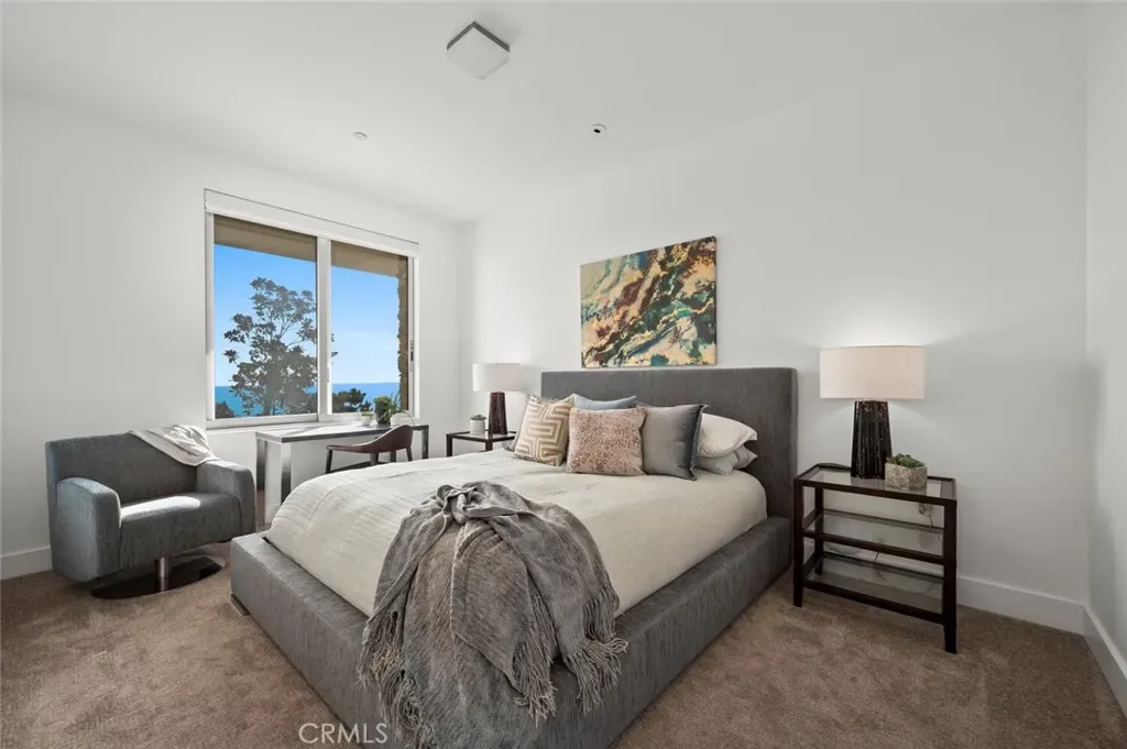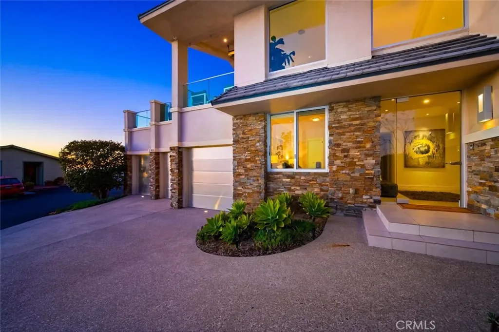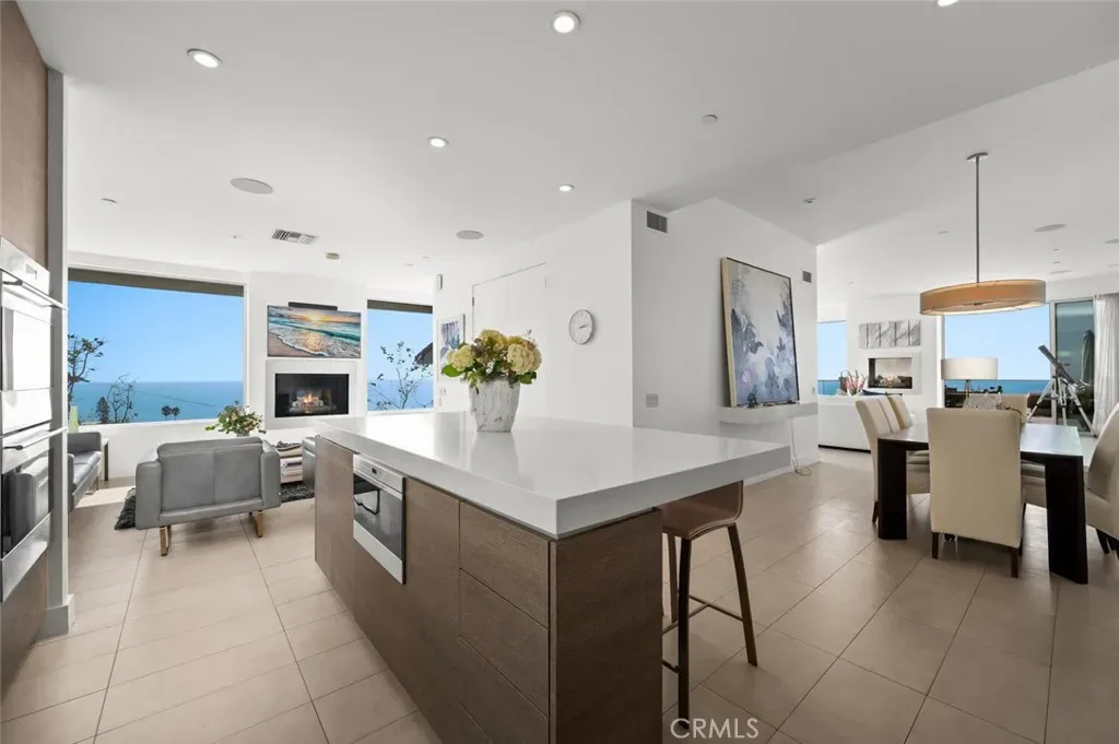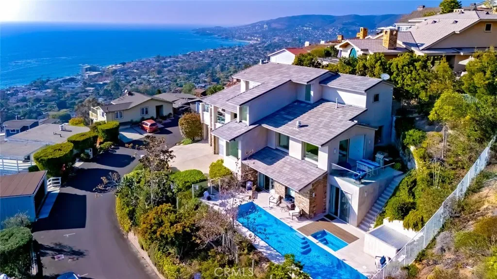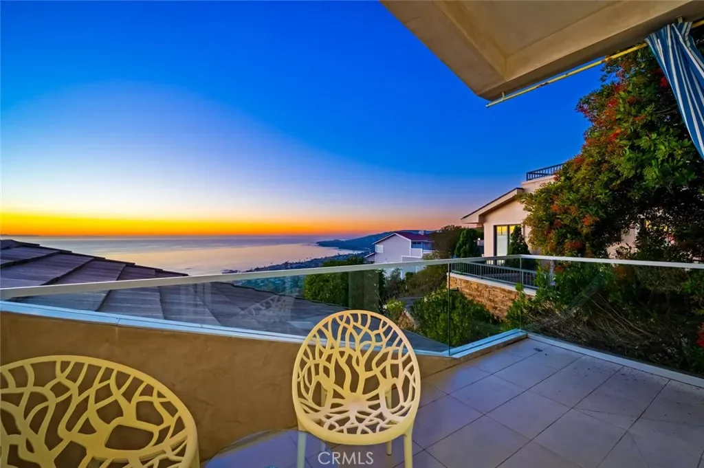 Breathtaking views with sunsets over Catalina Island to glittering city lights and sweeping whitewater views, this custom soft-contemporary residence captures the very best of Laguna Beach living. Showcasing dramatic ocean panoramas from nearly every room and terrace. Thoughtfully crafted for both grand entertaining and intimate relaxation, the home’s outdoor spaces include multiple ocean-view decks, a spacious terrace with a saltwater pool and spa, an expansive patio extending from the great room, and a private balcony off the primary suite—each offering an unforgettable coastal backdrop. A frameless glass entry door introduces a sophisticated interior, encompassing four bedrooms and four and a half baths, a striking stone-accented foyer, with high ceilings, floor-to-ceiling windows, whole-house audio, and three fireplaces create an atmosphere of modern refinement and effortless elegance. Designed by award-winning architect Joseph Ambrose, the residence exemplifies impeccable craftsmanship and timeless contemporary design. The main entertainment level centers around a dramatic great room and a sleek chef’s kitchen appointed with custom European-style cabinetry, a waterfall island with bar seating, stone surfaces with full-height backsplash, and professional-grade stainless-steel appliances including a built-in refrigerator and 6-burner cooktop. The ocean-view primary suite is a private retreat unto itself, offering vaulted ceilings, dual custom closets, and a spa-inspired bath with a soaking tub and oversized shower—an idyllic sanctuary where modern luxury meets coastal tranquility.