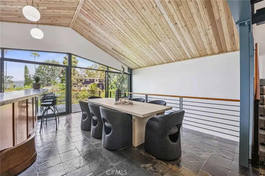 Multiple outdoor decks extend the living areas and offer opportunities for indoor-outdoor living. Surrounded by estate-style properties, this residence presents a unique opportunity to own a custom architectural home in one of Laguna Beach’s established neighborhoods.