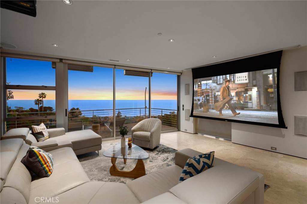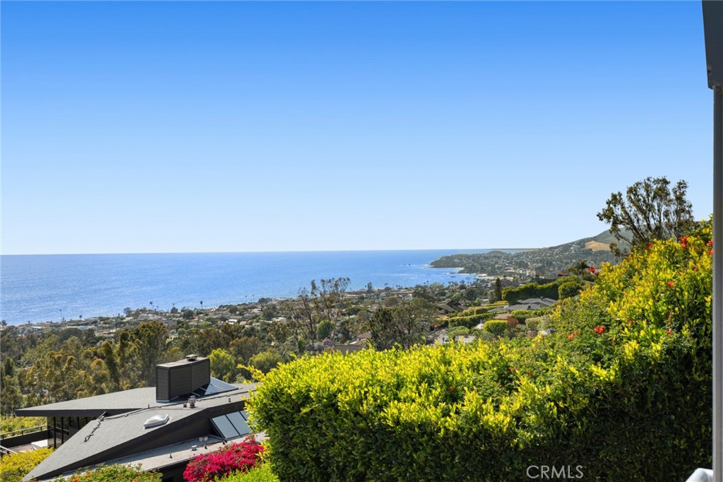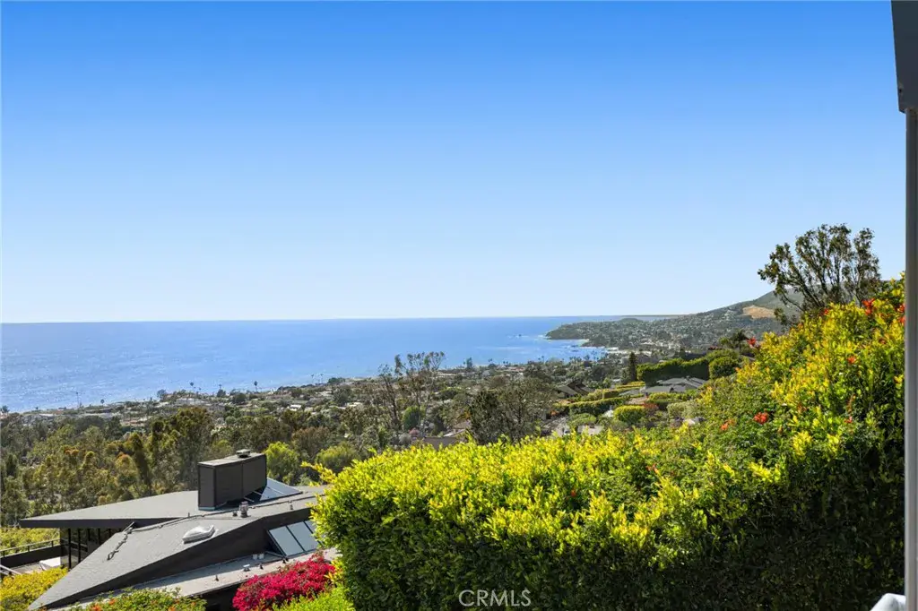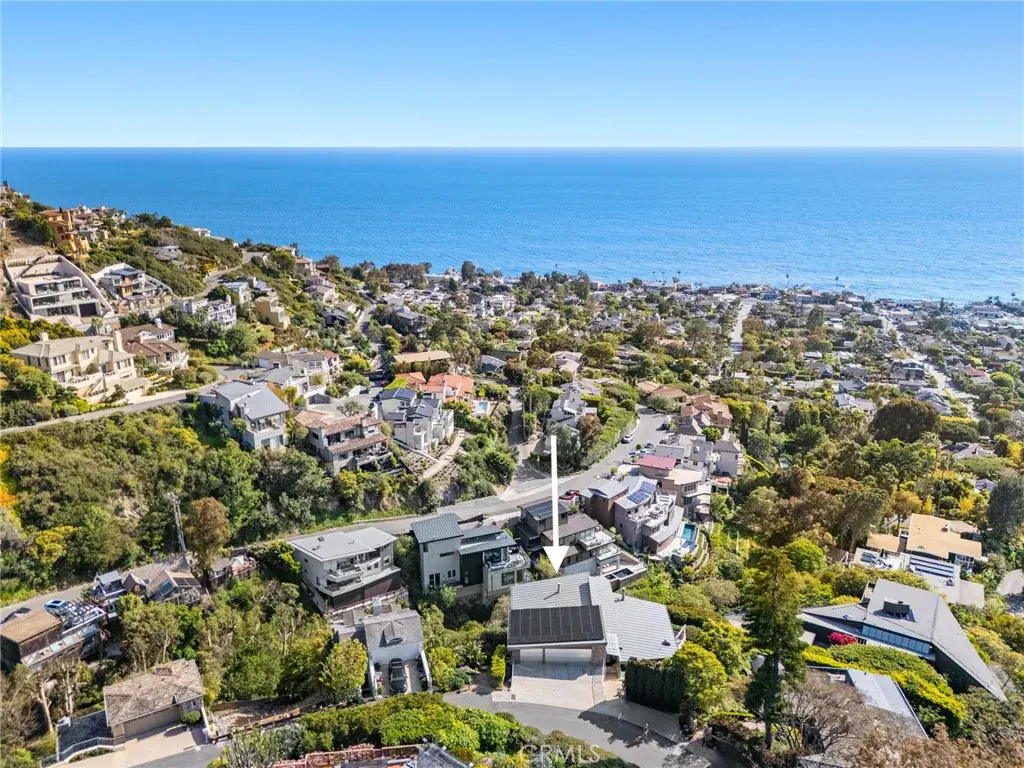 Welcome to a Mark Singer-designed sanctuary where modern sophistication meets coastal serenity. Perched in the highly sought-after enclave of Woods Cove, this one-of-a-kind 4-bedroom, 4,400 SF architectural marvel offers sweeping, unobstructed views of the Pacific Ocean, Catalina Island, and the pristine coastline of Laguna Beach. From the moment you step through the front door, you’re enveloped in floor-to-ceiling ocean vistas, soft coastal breezes, and refined finishes that evoke the indulgence of a five-star resort. Thoughtfully upgraded with newly installed and fully owned Tesla solar panels, the home offers cutting-edge energy efficiency without compromising luxury. The main level hosts a breathtaking primary suite with expansive walls of glass framing the endless seascape and twinkling city lights. The spa-inspired ensuite bath features heated floors, vaulted ceilings, and timeless elegance. A true chef’s kitchen awaits with quartzite countertops and backsplash, a large central island, and top-tier appliances including a Hestan range, Liebherr refrigerator, Cove dishwasher, and built-in two-drawer refrigerator. A spacious walk-in pantry adds convenience and style. Seamless indoor-outdoor living is at the heart of this home, with a tranquil water feature leading to a large entertaining deck—ideal for sunset dinners or lively gatherings under the stars. The mid-level offers a second living area for entertaining, complete with a built-in projector, expansive ocean-facing deck, and a climate-controlled 800-bottle wine cellar—perfect for movie nights or intimate tastings. Each secondary bedroom suite is a private retreat, featuring its own terrace, entrance, and coastal views. One room also doubles as a creative studio or home office. A distinctive staircase adds architectural flair, capturing sunlight and ocean sparkle by day and golden sunsets by night. Practical luxury continues with a generous three-car garage and a full driveway, ideal for guests and car collectors. And with fully owned Tesla solar, you’ll enjoy sustainable living with reduced energy costs—without sacrificing comfort. This is more than a home; it’s a lifestyle—a rare opportunity to live above the waves in timeless style, just moments from world-class beaches, restaurants, boutique shopping, and the vibrant Laguna Beach art scene.