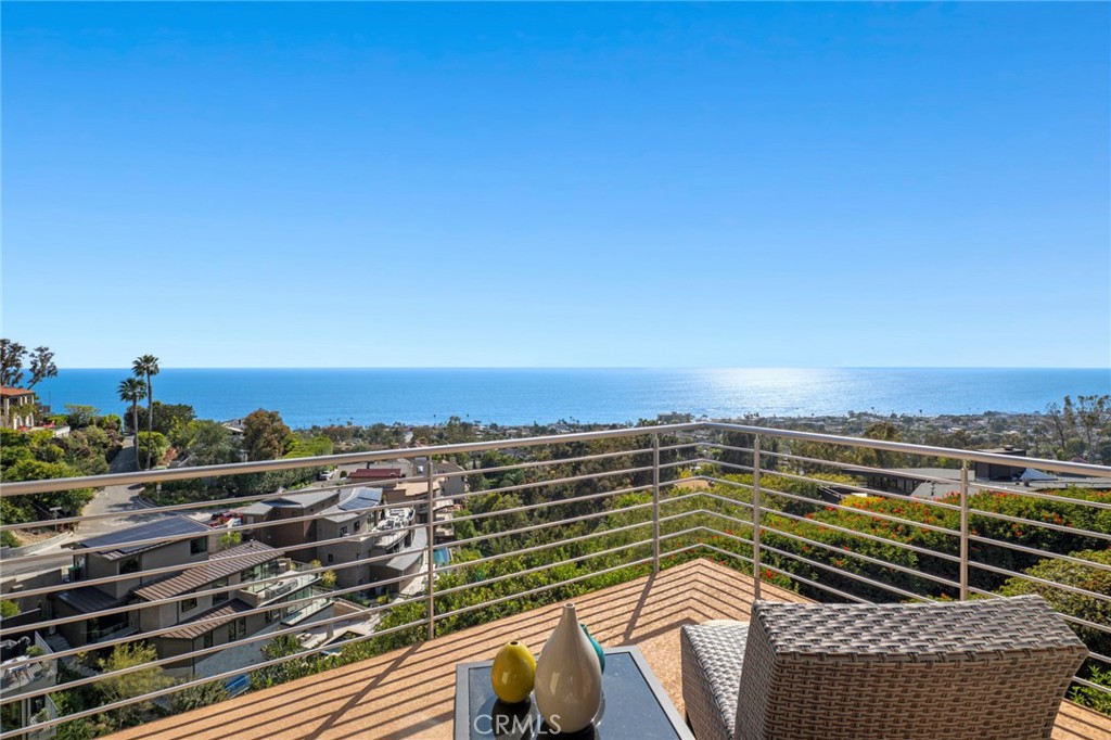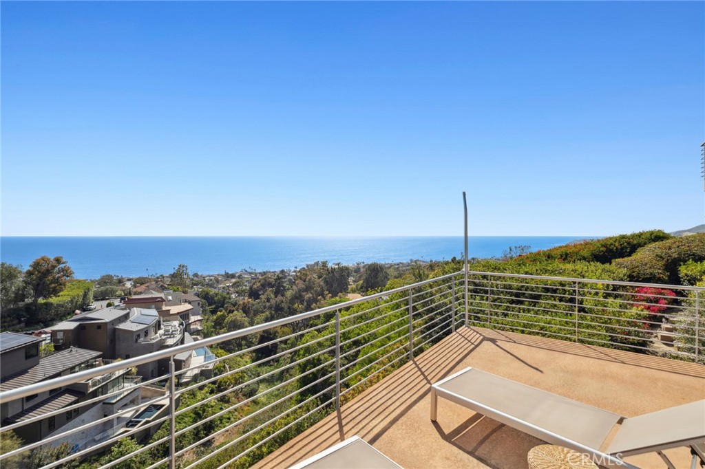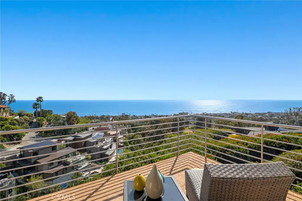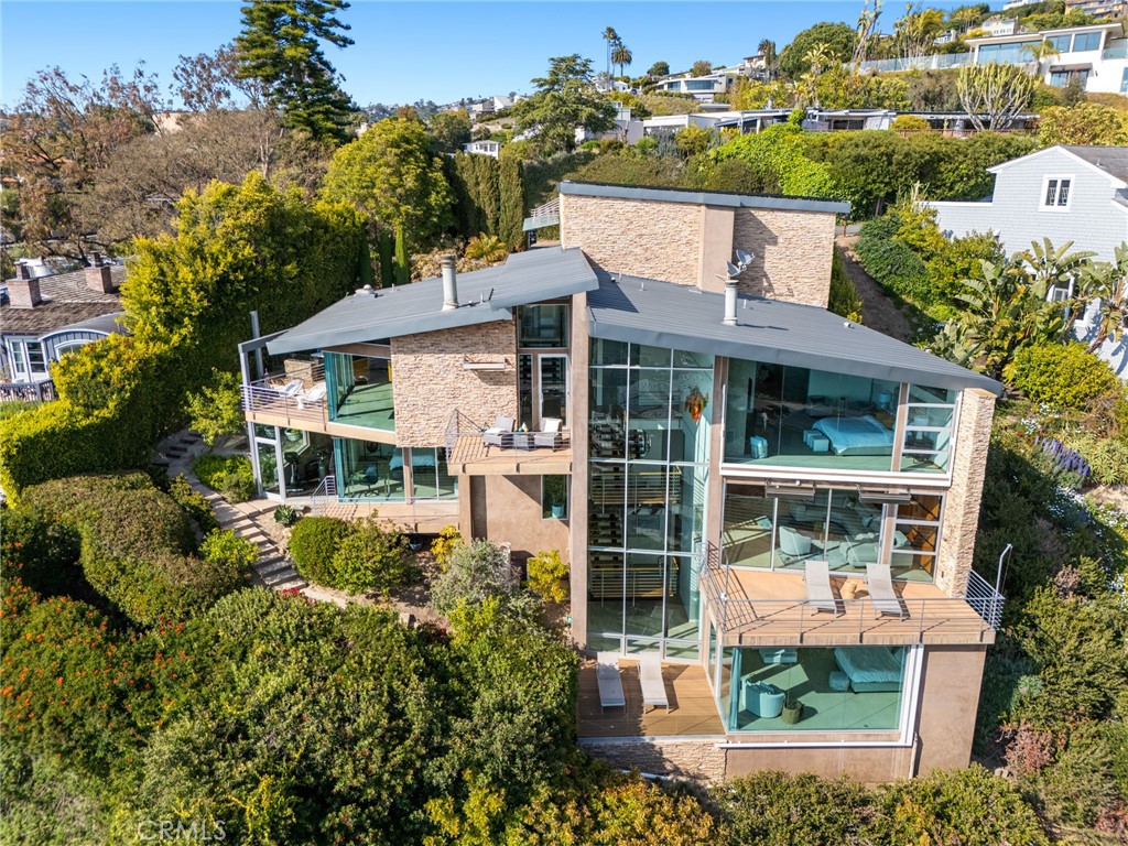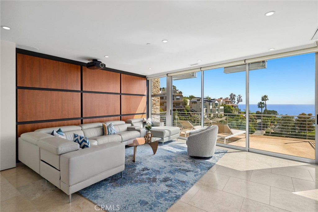 Welcome to a Mark Singer-designed sanctuary where modern sophistication meets coastal serenity. Perched in the highly sought-after enclave of Woods Cove, this one-of-a-kind 4-bedroom, 4,400 SF architectural marvel offers sweeping, unobstructed views of the Pacific Ocean, Catalina Island, and the pristine coastline of Laguna Beach. From the moment you step through the front door, you’re enveloped in floor-to-ceiling ocean vistas, soft coastal breezes, and refined finishes that evoke the indulgence of a five-star resort. Thoughtfully upgraded with newly installed and fully owned Tesla solar panels, the home offers cutting-edge energy efficiency without compromising luxury. The main level hosts a breathtaking primary suite with expansive walls of glass framing the endless seascape and twinkling city lights. The spa-inspired ensuite bath features heated floors, vaulted ceilings, and timeless elegance. A true chef’s kitchen awaits with quartzite countertops and backsplash, a large central island, and top-tier appliances including a Hestan range, Liebherr refrigerator, Cove dishwasher, and built-in two-drawer refrigerator. A spacious walk-in pantry adds convenience and style. Seamless indoor-outdoor living is at the heart of this home, with a tranquil water feature leading to a large entertaining deck—ideal for sunset dinners or lively gatherings under the stars. The mid-level offers a second living area for entertaining, complete with a built-in projector, expansive ocean-facing deck, and a climate-controlled 800-bottle wine cellar—perfect for movie nights or intimate tastings. Each secondary bedroom suite is a private retreat, featuring its own terrace, entrance, and coastal views. One room also doubles as a creative studio or home office. A distinctive staircase adds architectural flair, capturing sunlight and ocean sparkle by day and golden sunsets by night. Practical luxury continues with a generous three-car garage and a full driveway, ideal for guests and car collectors. And with fully owned Tesla solar, you’ll enjoy sustainable living with reduced energy costs—without sacrificing comfort. This is more than a home; it’s a lifestyle—a rare opportunity to live above the waves in timeless style, just moments from world-class beaches, restaurants, boutique shopping, and the vibrant Laguna Beach art scene.