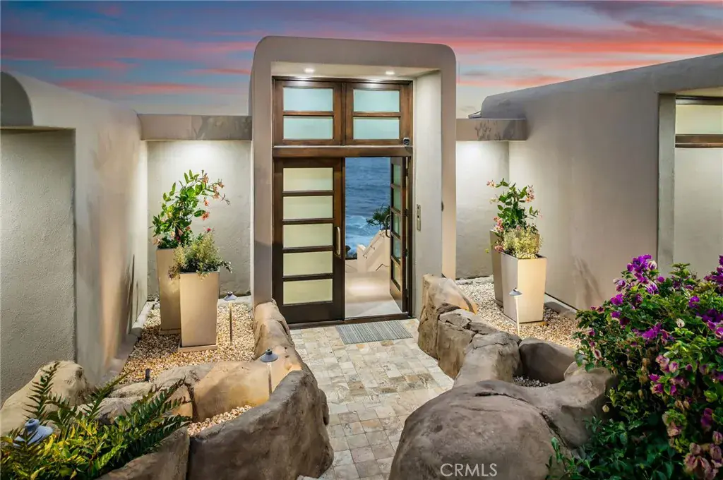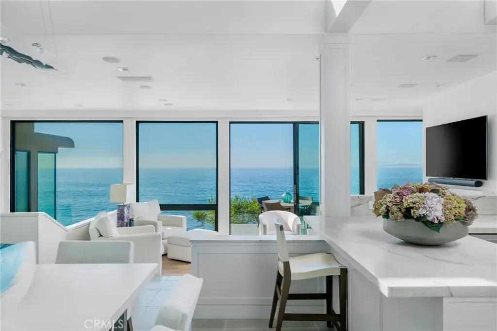 An extraordinary example of contemporary Chris Abel-designed architecture with unmatched ocean views. Artistically refreshed in 2023, this private estate with direct beach access offers nearly three thousand square feet of meticulously designed interiors. Thoughtfully integrated with its surrounding environment, the property was designed to maximize the striking coastal views with floor-to-ceiling windows and multiple glassed-in patios. The grand great room wows with panoramic vistas and is an ideal area to entertain as well as unwind, with the living, dining, and kitchen spaces seamlessly blending together to create a serene oasis. Fully renovated and ready for the most discerning home chef, the kitchen offers top-of-the-line appliances, new cabinetry with plentiful storage, and tasteful stone countertops. The living area is anchored by a fireplace and features access to a large balcony which seemingly floats above the sand below. Breathtaking views of the Pacific continue in the retreat-like primary suite with its multiple windows and another of the home’s decks. The secondary bedrooms are also ocean-facing, offering guests an unparalleled experience. Every detail of the exterior space has also been considered, with patio areas and an in-ground spa for taking in the coastal panoramas. Fully modernized for everyday living, this property is outfitted with a state-of-the-art audiovisual system, automatic Lutron shades, and a two-car garage. Stunning, updated interiors, endless views, and a convenient location make this estate truly one of a kind.