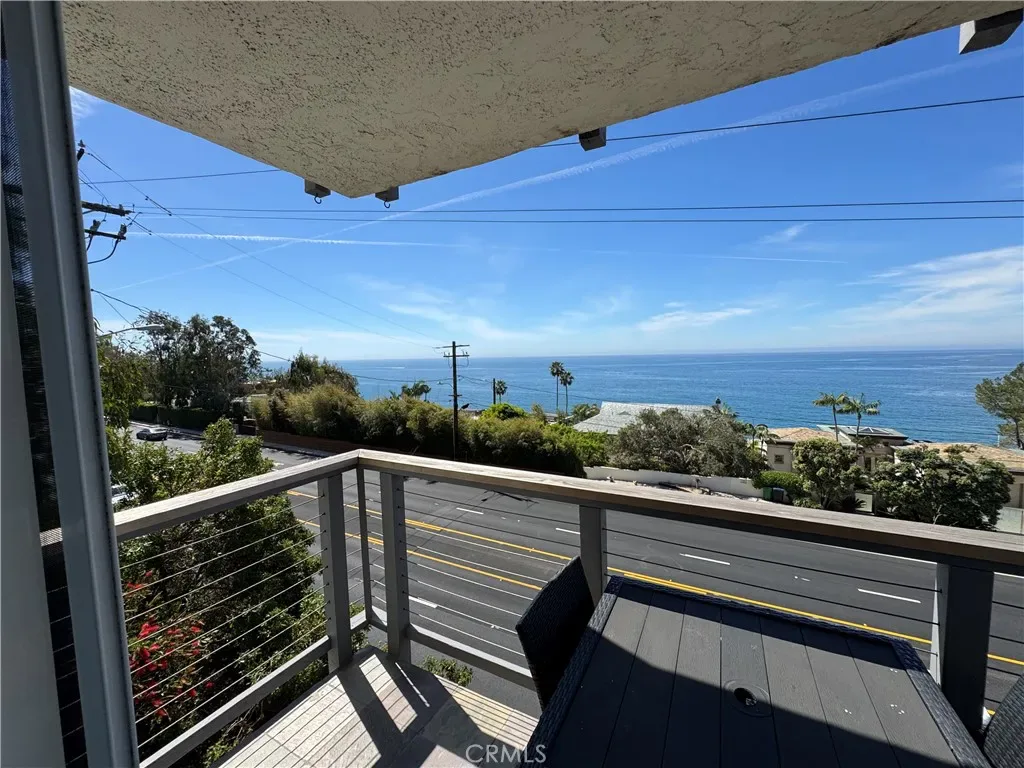 Wake up every morning and enjoy your coffee on your private balcony with the Pacific ocean as the perfect backdrop. This spectacular corner unit offers two bedrooms, two bathrooms, a tremendous view of the ocean from the primary living room and both bedrooms. A corner unit means an extra window with an ocean view. This unit is newly remodeled, with excellent touches. A modern kitchen with quartz countertops and island, tile floors throughout, white cabinetry, garbage disposal, indoor stackable washer/dryer, single car garage, two full bathrooms. Mirrored sliding door closets and ceiling fans in each bedroom. Throw in a shared common area for down time with friends and family or just me time for yourself. The location is pure Laguna Beach with beach access near by, a trolley stop which opens up the ability to take advantage of world class shopping, restaurants, art galleries, and spas. If you are looking for the Laguna Beach life style this is it! Make this one a must see!