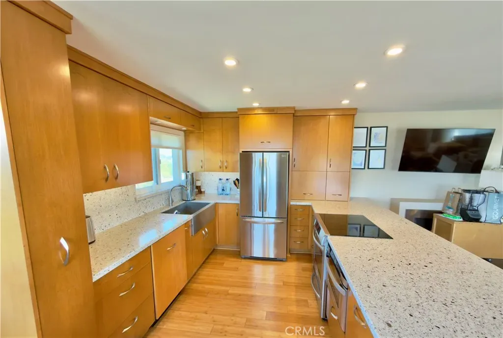 Beautifully remodeled, Ocean and Catalina Island view condo in charming Wood’s Cove. Just a block from the beach entrance, this turn-key, furnished unit has been thoughtfully designed with luxury features and an open floor plan to take advantage of the sweeping Coastline views. Cozy, decorative fireplace and contemporary decor in the Living Room. Updated kitchen with granite counters opens to tasteful Living spaces and ocean view dining area. The Primary Suite also has ocean views and a large, flat-screen TV. The luxurious bathroom has a step-in shower, granite counters, and tile floors. Step out to a covered outdoor patio/deck area with panoramic views. All this, just steps away from Laguna Beach’s shops, restaurants, and an easy walk to the village area and lovely Woods Cove Beach. This is a long-term, furnished lease.