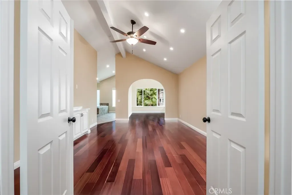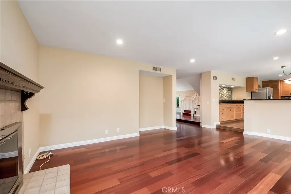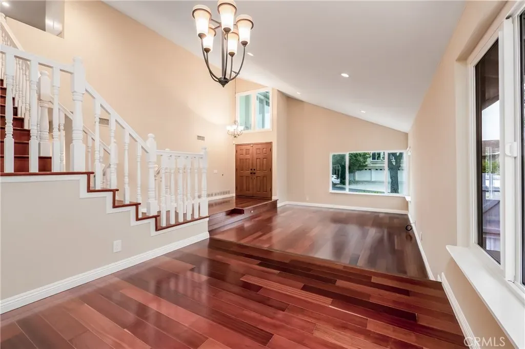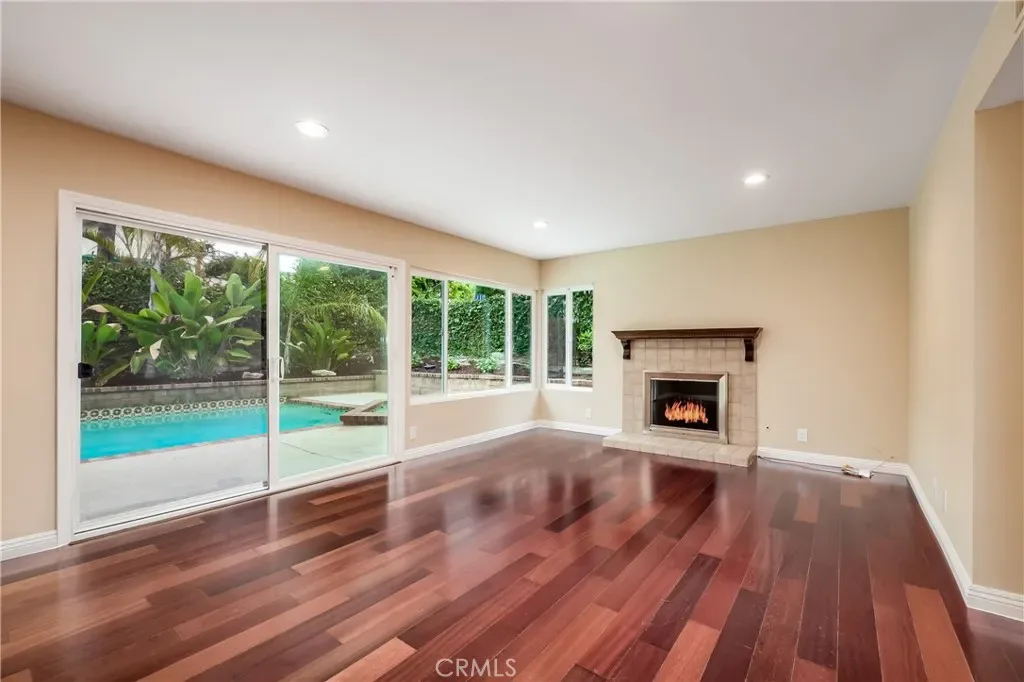 $5,800 per month for long term lease. Remodeled home with private pool and spa in a quiet, desirable neighborhood. This turnkey residence features vaulted ceilings, cherrywood flooring, an upgraded kitchen with island, granite countertops, wood shaker cabinetry, and stainless steel appliances including gas range, refrigerator, and dishwasher. All bathrooms have been beautifully renovated,. Dual-pane windows and sliders, dual zone Heat and A/C, neutral interior paint, upgraded baseboards, raised panel interior doors, ceiling fans, and recessed LED lighting in every room. Flexible floor plan with a main-level bedroom and bath with side door for pool access and three bedrooms upstairs, including a spacious primary suite with large retreat/office and a spa-inspired bath featuring dual sink vanity, a soaking tub and large walk-in shower. Upper level guest bath is beautifully remodeled with a dual sink vanity and tub/shower. Additional highlights include an upgraded fireplace and mantle, epoxy garage floor, and roll up garage door. Private backyard offers an in-ground pool and spa, removable child-safety fencing, and ample space for outdoor entertaining including a gas stub for BBQ grill. Ideally located near parks, trails, top-rated schools, shopping, restaurants, and convenient freeway and toll road access.