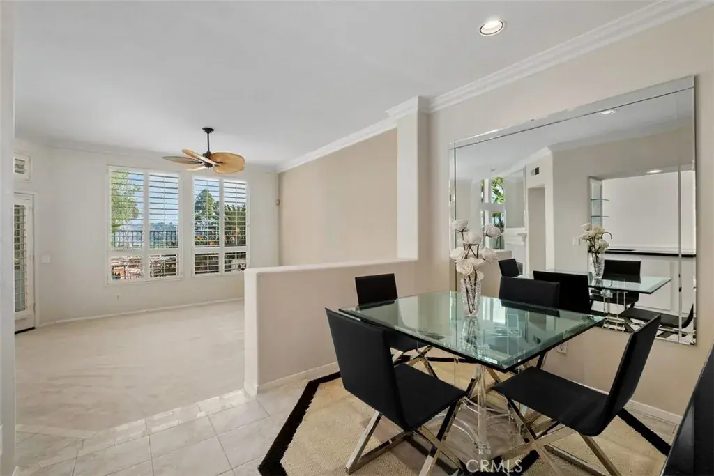A dramatic entry welcomes abundant natural light through expansive windows and soaring 18-foot ceilings, immediately highlighting the home’s gorgeous open design—both comfortable for everyday living and elegant for entertaining. Nestled within the exclusive gated community of Bella Vista on one of its most coveted view lots, this beautifully updated residence offers over 2,500 square feet of thoughtfully designed living space, including three bedrooms, two-and-a-half bathrooms, a versatile loft, and a rare three-car garage. The formal living room is anchored by a fireplace and framed by stunning two-story windows, while the adjoining dining room features refined architectural details ideal for hosting. Recent renovations throughout the home add a fresh, modern feel while preserving timeless elegance. The gourmet kitchen showcases custom cabinetry and a generous casual dining area that flows seamlessly into the family room, complete with a second fireplace and direct access to the backyard. Upstairs, the primary suite serves as a private retreat with its own fireplace, dual vanities, soaking tub, separate shower, and a spacious walk-in closet. Two secondary bedrooms and a flexible loft complete the upper level, perfect for a home office, media space, or lounge. The multi-level backyard opens to breathtaking views, creating a private oasis ideal for both relaxation and entertaining. Residents of Bella Vista enjoy a gated entry, community pool and spa, ample guest parking, and meticulously maintained grounds, all conveniently located near parks, hiking trails, shopping, dining, theaters, and top-rated schools. This home effortlessly blends resort-style living with everyday comfort and sophistication.