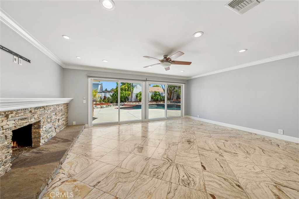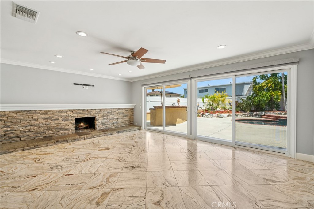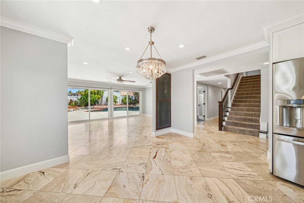 From the lush landscaping to the welcoming entry, every detail sets the stage for what’s inside. The open-concept living spaces are filled with natural light and warm designer touches throughout. Downstairs offers a spacious living room with fireplace, a formal dining area, and a stunning kitchen with stainless steel appliances, gorgeous countertops, and custom cabinetry. Out back, your private paradise awaits—complete with a sun-splashed pool & bubbling jacuzzi!