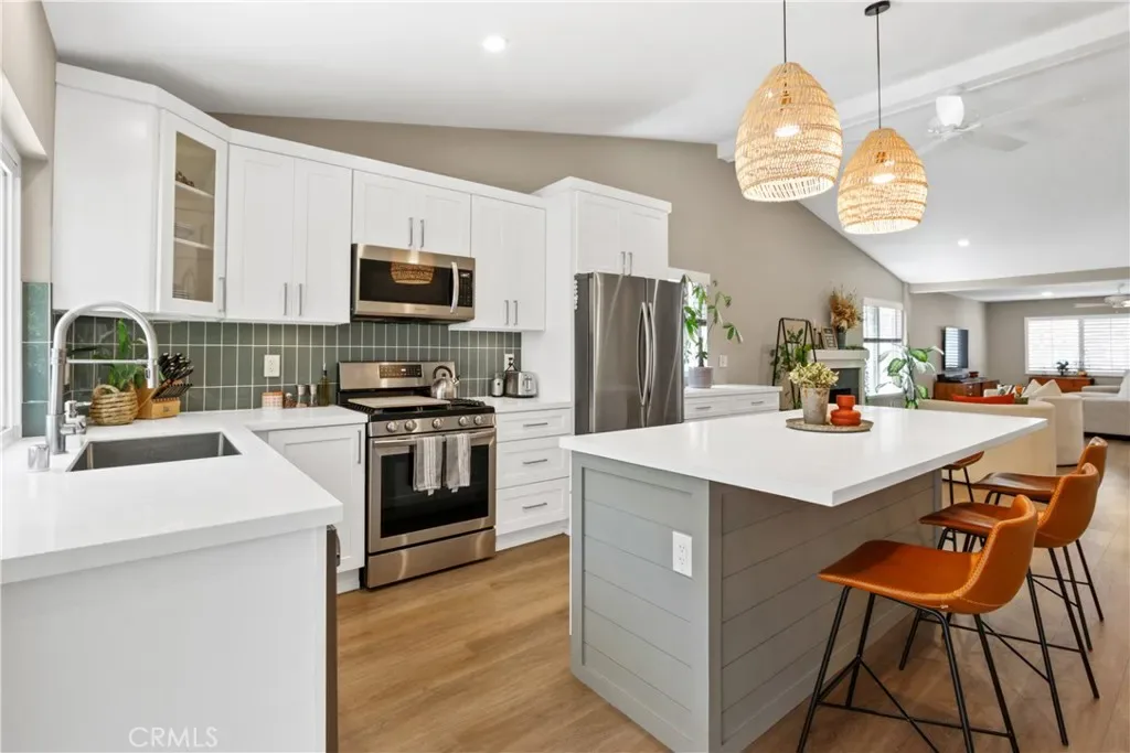 Beautiful 3 bedroom, 2 bath, 2 car garage, single family residence located in the wonderful city of Laguna Hills. It all starts as you walk in the front door, you will see the pride of home ownership. This beauty has been completely remodeled from top to bottom with New Luxury Vinyl throughout home, custom painting interior and exterior, all new base boards, new casings, dual pane windows, new toilets, shelf organizers, new blinds, brand new interior/exterior doors, ceiling fans, brand new kitchen with shaker cabinets, quarts counter tops, new undermount deep kitchen sink , back splash, stainless steel appliances, LED Ceiling lighting, large kitchen island and custom built garage cabinets and epoxy flooring in the garage. This model has a very bright and open floor plan with plenty of natural light. This property just has to many upgrades to mention. You must really see to really appreciate. The living/family room is very spacious with a cozy fireplace, 3 spacious bedrooms with a large master bedroom, brand new vanity and shower tub with upgraded backslash. Don’t forget about the lovely back yard with a nice Built in BBQ and relaxing patio to enjoy those summer evenings with family and friends. You must bring your pickiest buyers. This property will not disappoint. Great location next to shopping centers, restaurants and shopping malls. Must see to really appreciate! HURRY THIS PROPERTY WONT LAST !