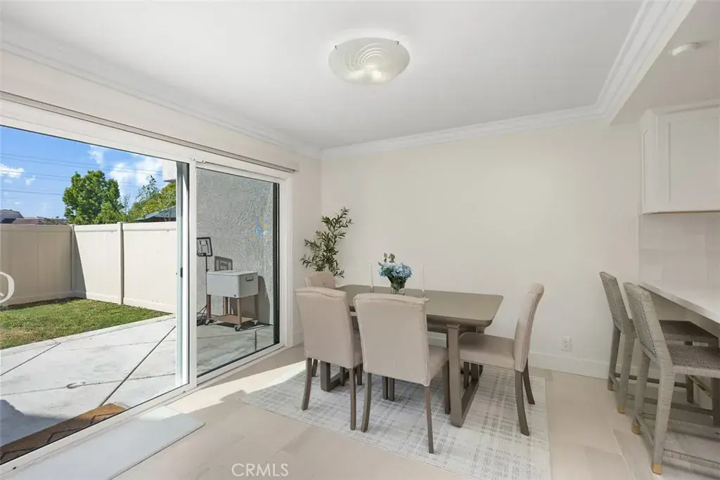 This beautifully updated single-family attached home is ideally situated in the sought-after and well-maintained Indian Hill community in the city of Laguna Hills. Conveniently located near the Laguna Hills Community Center, Sheep Hill Park, shopping, dining, and local schools, this home sits on a cul-de-sac with a greenbelt backdrop and a enclosed backyard. Approach the property through the private, landscaped gated courtyard, creating a perfect first impression. Step inside to discover a newly tiled entry that opens to a light-filled interior featuring crown molding, dual-pane windows. The open floor plan provides a welcoming and functional living space that’s filled with light. A spacious living room that connects seamlessly to the dining area and kitchen. Two sliding doors provide direct access to the backyard and patio, making it ideal for indoor-outdoor living and entertaining. The UPDATED KITCHEN dazzles with sleek quartz countertops, a brand-new stove and dishwasher, recessed lighting, classic white Shaker cabinetry, and a breakfast bar perfect for casual dining. Ascending the naturally lit staircase, you’ll find the bedroom level, where wood laminate flooring and crown molding continue throughout. The upper landing also includes linen cupboards for additional storage. The serene master suite features high vaulted ceilings, picturesque views of Sheep Hills Park, two mirrored closets, and a spa-inspired ensuite bath complete with white Shaker cabinetry, updated faucets, and modern vanity lighting. The home has received numerous upgrades, including a Whole House Re-Pipe, new AC, new toilets, new shower heads, all California water compliant. Outside, the spacious backyard serves as a private oasis with a large patio and lawn, perfect for barbecues and relaxing moments with family and friends. The Indian Hill community is conveniently located next to the family-friendly Sheep Hills Park, which offers a playground, playing fields, picnic areas, and walking and biking trails. Residents also enjoy easy access to the Laguna Hills Community Center, Dinosaur Park, sports fields, an events center, and a skate park. For those seeking outdoor adventures, nearby biking and hiking trails lead through Aliso & Wood Canyon Wilderness Park and Aliso Creek, extending all the way to the ocean.