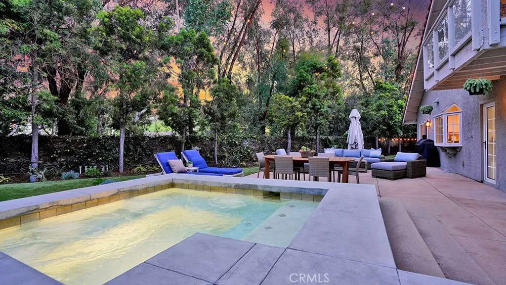 Then the doors open and everything changes. The backyard isn’t just a feature, it’s the lifestyle. A renovated cocktail pool, an expansive patio, and low maintenance landscaping that stays beautiful without the work. The dining room opens through two sliders, creating that seamless indoor outdoor flow that makes hosting feel natural, not forced.