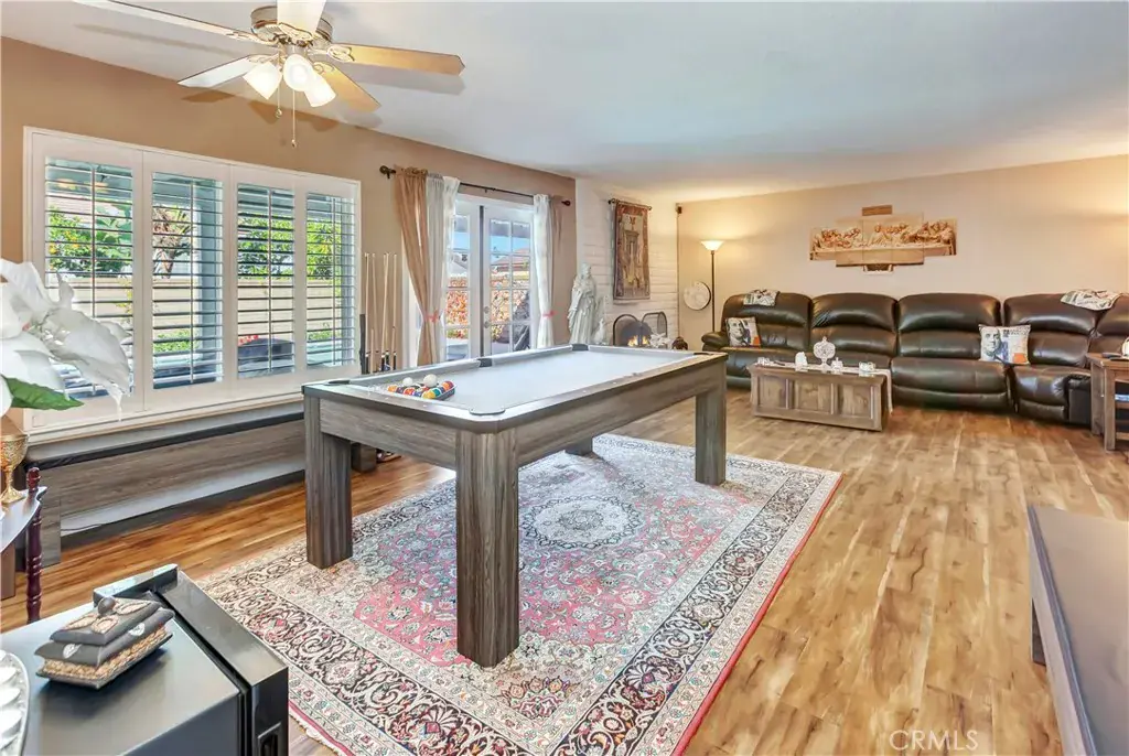 Fantastic opportunity to own a 4bd 2.5bth + office pool home. Laminate flooring throughout with remodeled Kitchen featuring granite counters, newer cabinets, generous sized eating area and formal dining. Large living room with fireplace and french doors leading to the rear patio deck. Other upgrades include Dual Pane windows, newer roof, and newer HVAC. Upstairs rooms are light and bright with abundant space. Spacious Primary Bedroom features its own balcony with beautiful views of Saddleback Mountain. Property is adorned with abundant fruit trees throughout. Easy access to the 5 freeway as well as surrounding Parks & Amenities.