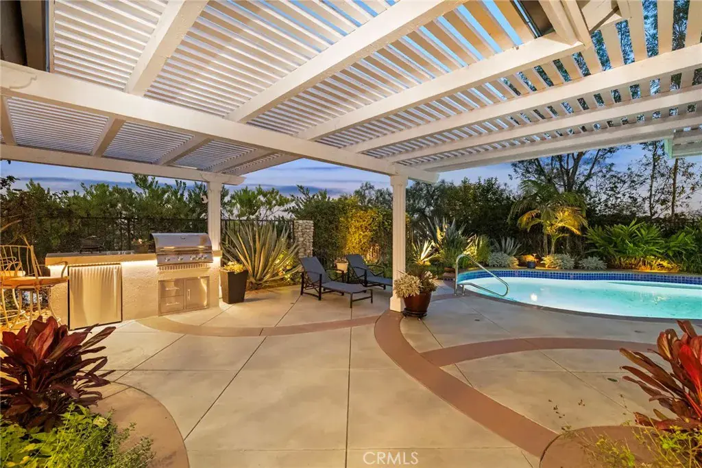 Recently painted inside and out, the home showcases vinyl flooring, newer windows, a new water heater, and upgraded landscape lighting. The expansive backyard has been thoughtfully refreshed with over 80 new plants and is perfect for entertaining, complete with a quartz-topped outdoor BBQ, stainless steel grill, and built-in mini refrigerator.