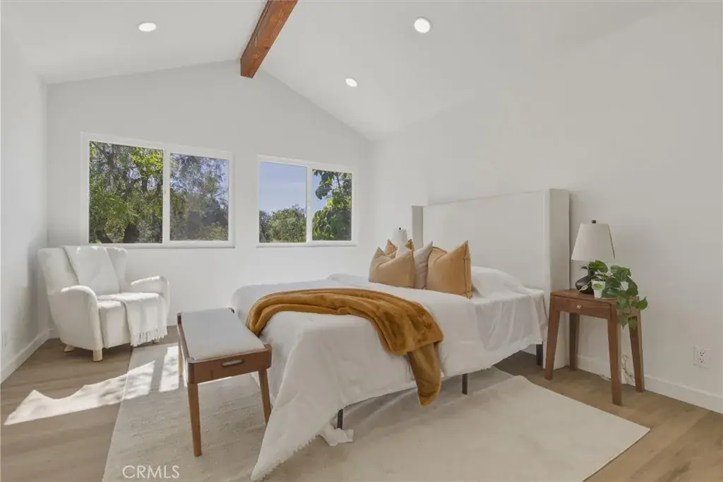Interior improvements include updated flooring, fresh interior paint, a remodeled kitchen with upgraded cabinetry and countertops, and tastefully renovated bathrooms. The functional layout offers light-filled living spaces and vaulted ceilings in the primary suite.