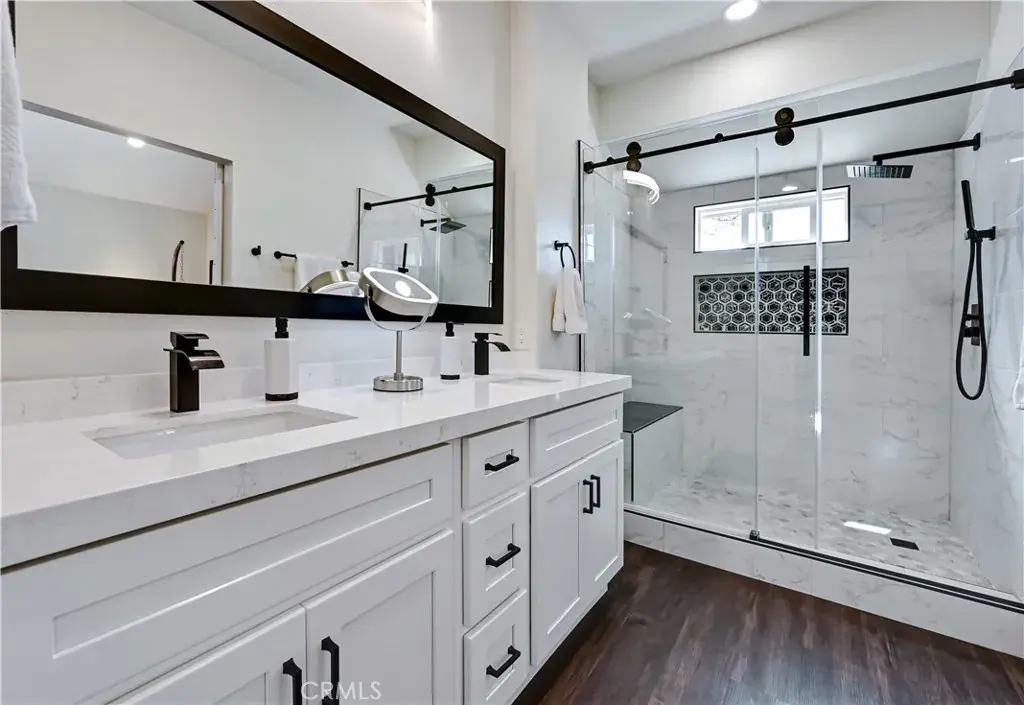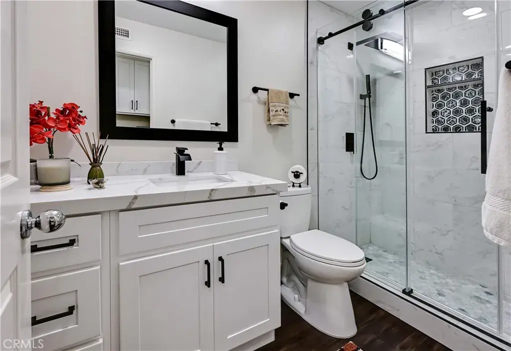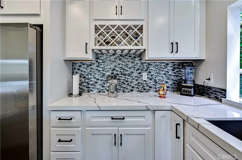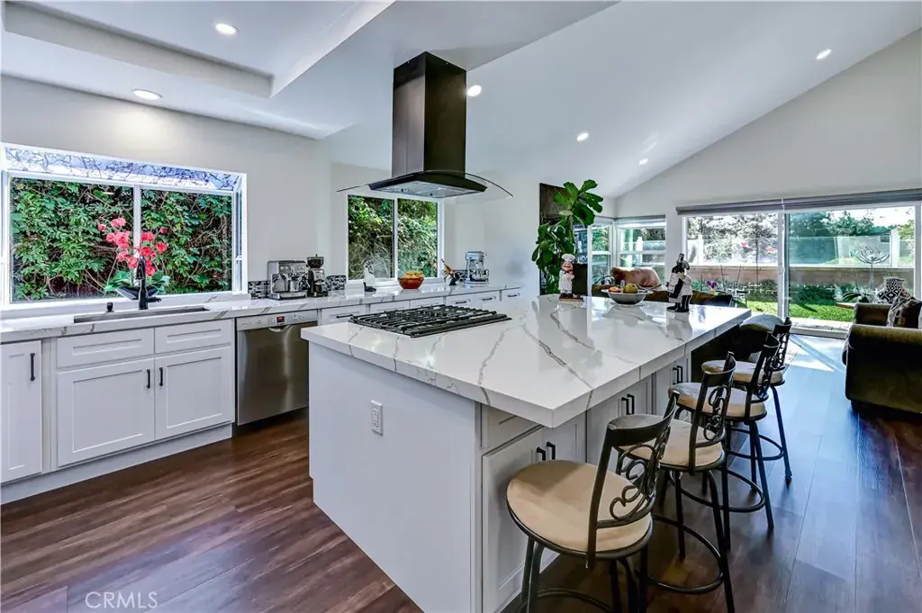 Welcome to this RARELY AVAILABLE, SINGLE-STORY SANCTUARY exquisitely remodeled and nestled in the highly sought-after Rancho Niguel neighborhood. Ideally situated in a QUIET AND PRIVATE PREMIER CUL-DE-SAC LOCATION, and within the highly rated Capistrano Unified School District. This COMPLETELY TURN-KEY, MOVE IN READY boasts uncompromising quality and flawless execution in every corner. A tastefully reimagined home, it offers 3 spacious bedrooms and 2 bathrooms, blending modern design and luxury with everyday comfort. The exterior makes a striking first impression with its clean, modern-line architectural style, featuring new paint, energy-efficient double-pane windows throughout, and a 10-foot sliding glass door for fresh air. Inside, the home has been transformed into an open-concept living space with SOARING HIGH VAULTED CEILINGS, where the living room, dining area, and kitchen flow seamlessly together. Warm modern finishes are throughout, including new flooring, interior doors, baseboards, paint, and updated light fixtures, along with the comfort of central air conditioning. Plumbing is Copper and AquaPex. The stunning kitchen is a true centerpiece, offering a glittering designer backsplash, new cabinetry, elegant quartz countertops, and a magnificent 8’x 5′ center island with additional seating, complemented by top-of-the-line stainless steel appliances. The primary bedroom is privately positioned at the rear of the home, providing a peaceful retreat with serene backyard views AND A SPA-INSPIRED PRIMARY BATH FEATURING A LUXURIOUS RAINFOREST SHOWER. Step outside into a private backyard, with new glass fencing ideal for entertaining, relaxing, or enjoying indoor-outdoor living. There is a contemporary garage door, new side gates, and an inside, spacious, finished garage. Beyond the interiors, the home sits on a lovely lot of about 5,500 square feet, giving you ample outdoor space to enjoy California’s mild coastal climate and peaceful neighborhood ambiance. The exclusive Rancho Niguel community offers an extravagant line-up of amenities for residents to enjoy, including two pools, an adult spa, a tot lot, volleyball, basketball, and tennis courts, a barbecue area, and a private resort-style clubhouse. Located in a community known for its scenic beauty, excellent schools, and proximity to parks, trails, and the beach, this IMPECCABLE Laguna Niguel home feels like a serene retreat. It’s Perfect Orange County living at its best! Come and see for yourself!!