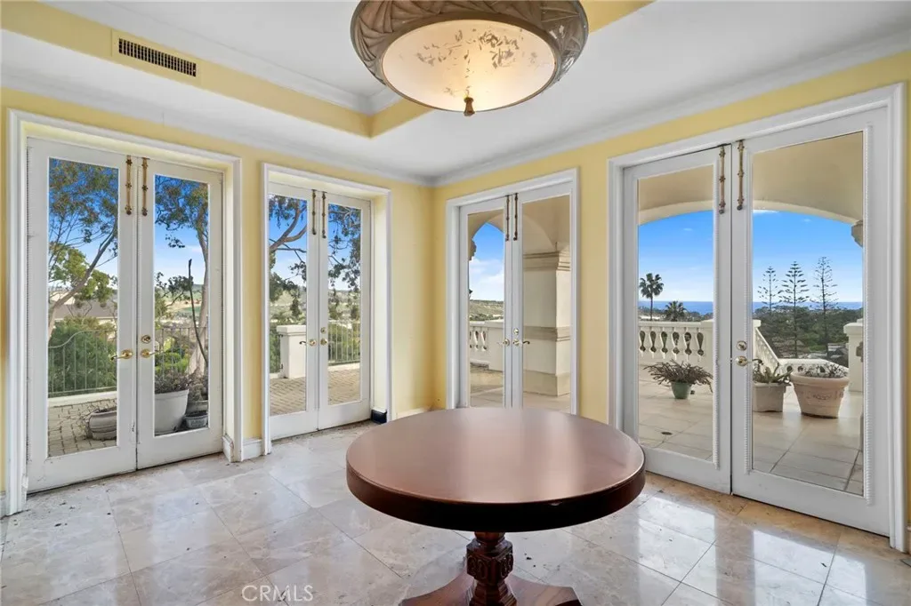 Home has over 2000 sq ft of ocean viewing patios adorned with balustrades. Four car garage and A motor court is ideal for your car collection. This home is located on a quiet cul de sac street in a custom 24 hour guard gated community located just 3 miles from Dana Point harbor. This estate is reminiscent of those beautiful estates seen in Bel Air and Hollywood where the movie industry moguls reside ! A great opportunity to revive this magnificent Estate property.Current owner has owned home for nine years and considered a full remodel. Home priced to reflect cost of significant remodel.This is the lowest priced home in Bear Brand Ranch of this square footage and lot size. A great opportunity for both a home owner or an eager investor.